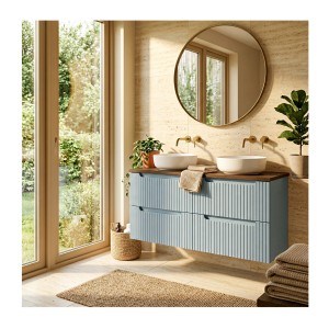 Vorschau Vorschau In den Warenkorb legen available Neu Preis Wandhängendes Badezimmer-Set VANO in Denim-Blau und Eichenholz 120cm:... 419,00 €