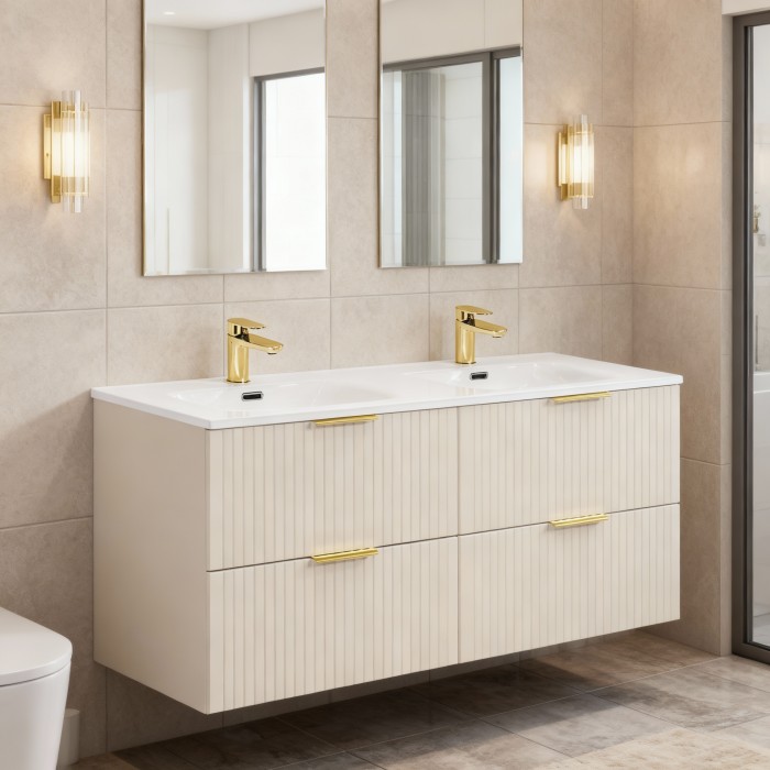Vorschau Vorschau In den Warenkorb legen available NOXERA Ensemble de salle de bains NOXERA 120 cm – Marron congo – Double vasque + colonne suspendue 769,00 € Neu Preis