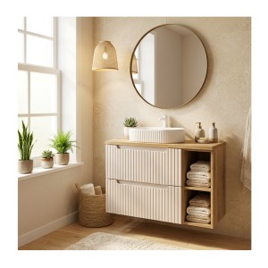 Vorschau Vorschau In den Warenkorb legen available Neu Preis Ensemble VANO cachemire et chêne 80cm : meuble sous vasque à tiroirs avec... 359,00 €