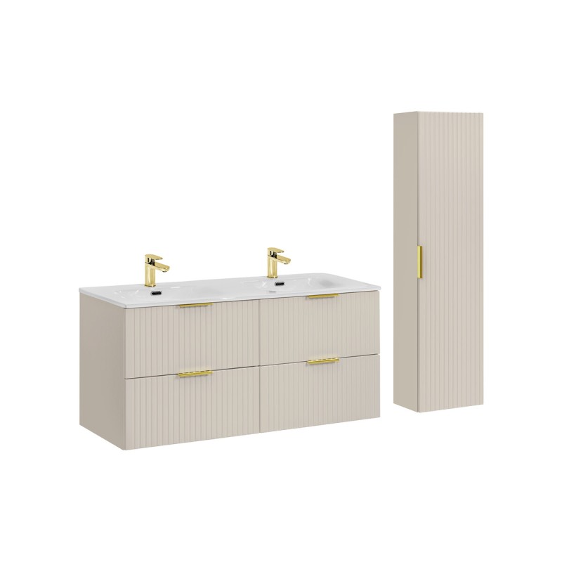 Apportez style et confort à votre salle d’eau avec l’ensemble de salle de bains NOXERA. Large de 120 cm, il se compose d’un meuble moderne avec 4 tiroirs spacieux, d’une double vasque encastrée en céramique avec siphons inclus, et d’une colonne suspendue assortie pour un rangement vertical supplémentaire. Une solution complète et design pour votre quotidien.