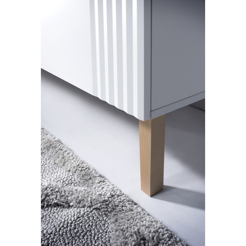 Verleihen Sie Ihrem Badezimmer einen strukturierten und hellen Stil mit dem FIDJI Set 160 cm. Diese Kombination vereint einen Unterschrank und eine Hochschrank in glänzendem Weiß mit einer Arbeitsplatte in Holzoptik und passenden Füßen, was einen modernen und warmen Kontrast schafft.