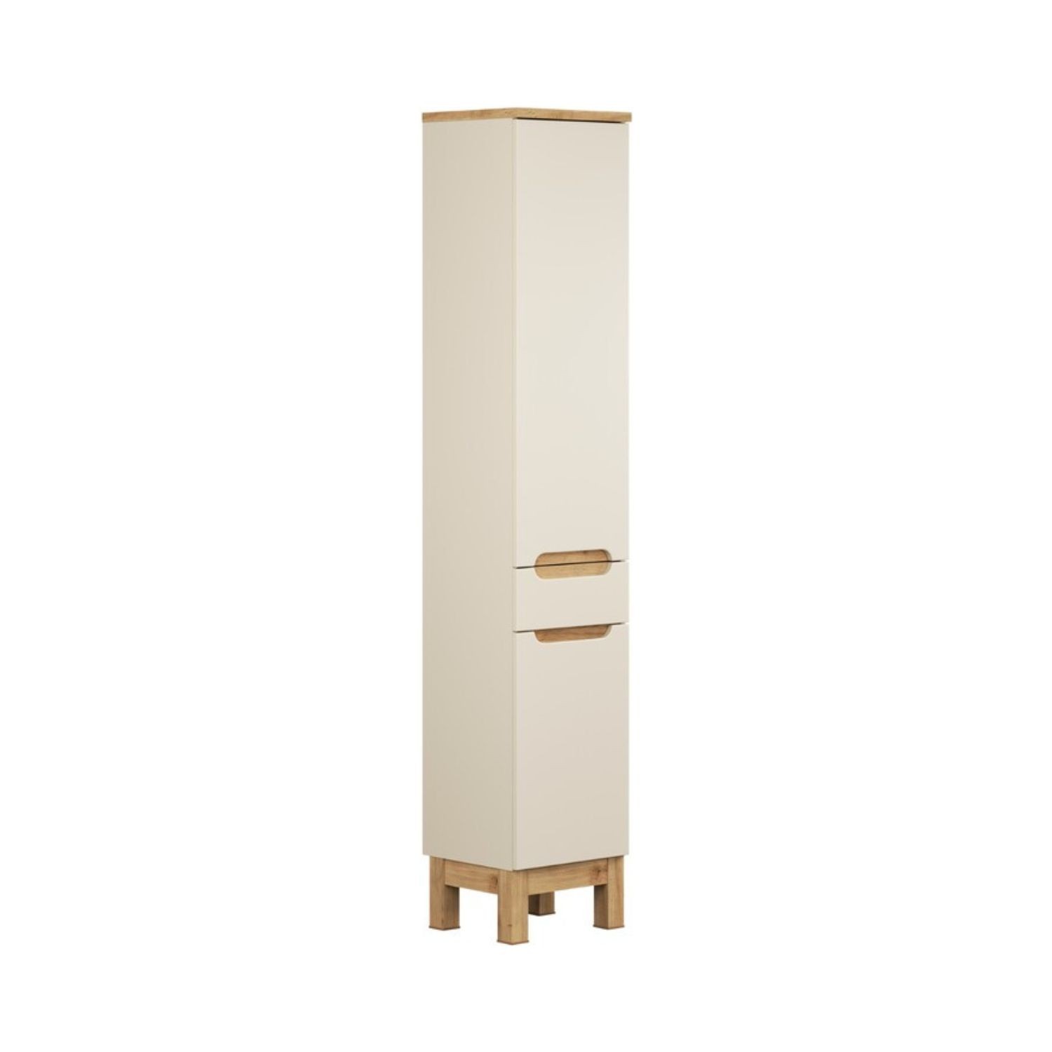 La colonne de salle de bain complète cet ensemble en apportant un espace de rangement supplémentaire idéal pour optimiser votre organisation.