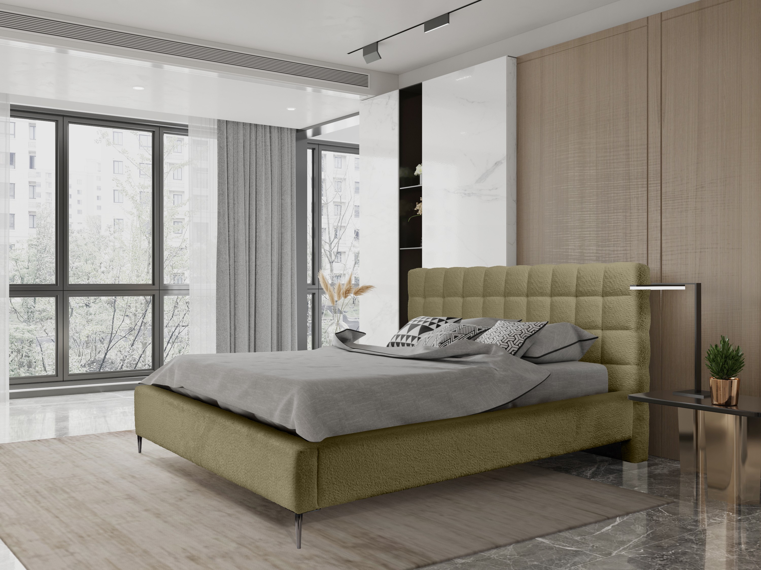Gönnen Sie sich ein Schlaf-Erlebnis, das dem der besten Hotels gleichkommt, mit dem hochwertigen Bett MILLIO in 160x200 cm. Bezogen mit einem prächtigen Bouclé-Chenille-Stoff in Khaki-Farbe, besticht dieses Polsterbett durch seine ultra-weiche Haptik und sein warmes Erscheinungsbild. Eine wahre Einladung zur Erholung, die Ihr Schlafzimmer augenblicklich veredelt.