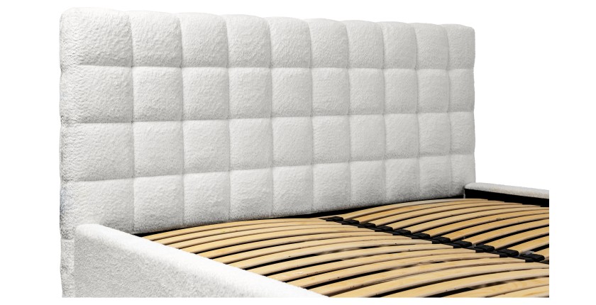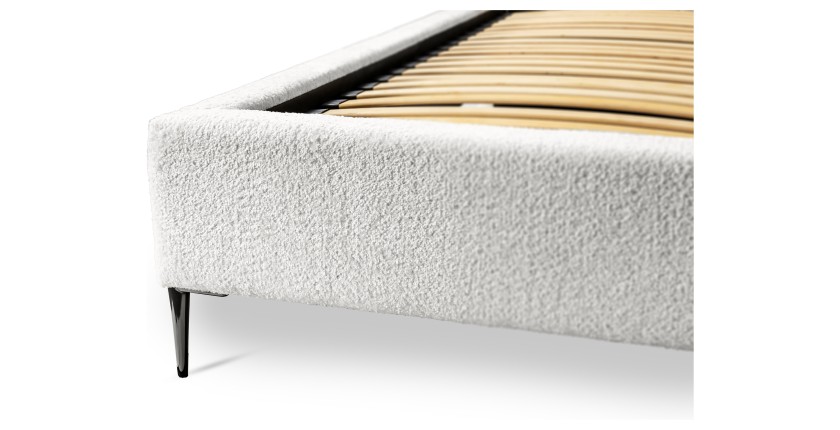 Verleihen Sie Ihrem Schlafzimmer mit dem Bett MILLIO 140x200 cm in Elfenbein Bouclé-Chenille-Stoff eine helle und elegante Note. Dieses gepolsterte Bett mit seiner ultra-weichen Haptik besticht durch seine Raffinesse und außergewöhnlichen Komfort, der an die schönsten Luxushotelzimmer erinnert.