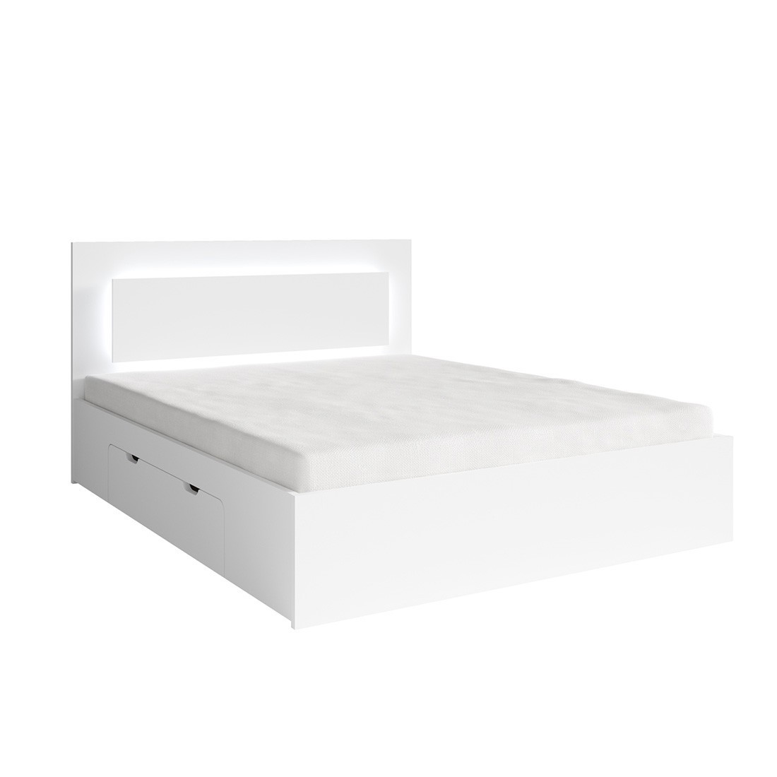 Modernes Bett mit Lattenrost und 2 Schubladen - NOFI Kollektion in Weiß - 160 x 200 cmDas NOFI Bett in Weiß mit den Maßen 160 x 200 cm ist darauf ausgelegt, Komfort und Praktikabilität in Ihr Schlafzimmer zu bringen. Ausgestattet mit 2 Schubladen, jeweils eine auf jeder Seite, ist dieses Bett ideal, um den Raum optimal zu nutzen und gleichzeitig Ihrem Interieur eine moderne und helle Note zu verleihen. Der inkludierte Lattenrost bietet optimalen Halt für Ihre Matratze und garantiert erholsamen Schlaf, während die Schubladen praktischen Stauraum für Ihre Sachen bieten.Produktmerkmale:Produkttyp: Bett mit Lattenrost und 2 SchubladenMaße:Breite: 167 cmHöhe: 100 cmLänge: 205 cmLiegefläche: 160 x 200 cmLattenrost inklusive: JaMaterial: Hochwertige SpanplattenFarbe: WeißGewicht: 95 kgAnzahl der Pakete: 3Vorteile des NOFI Betts:Helles Design: Weiße Oberfläche für einen modernen und klaren Look.Praktischer Stauraum: 2 Schubladen zur Optimierung des Stauraums in Ihrem Schlafzimmer.Langlebige Qualität: Gefertigt aus robusten Materialien für eine lange Lebensdauer.Lattenrost inklusive: Sofort einsatzbereit für Ihren sofortigen Komfort.Warum unser NOFI Bett wählen?Praktisch und ästhetisch: Ein Bett, das Funktionalität und Design vereint, um Ihr Schlafzimmer zu verschönern.Anpassungsfähigkeit: Ideal für moderne Schlafzimmer mit großzügigem Platzangebot.Pflegeleicht: Glattflächig und leicht zu reinigen für minimale Wartung.