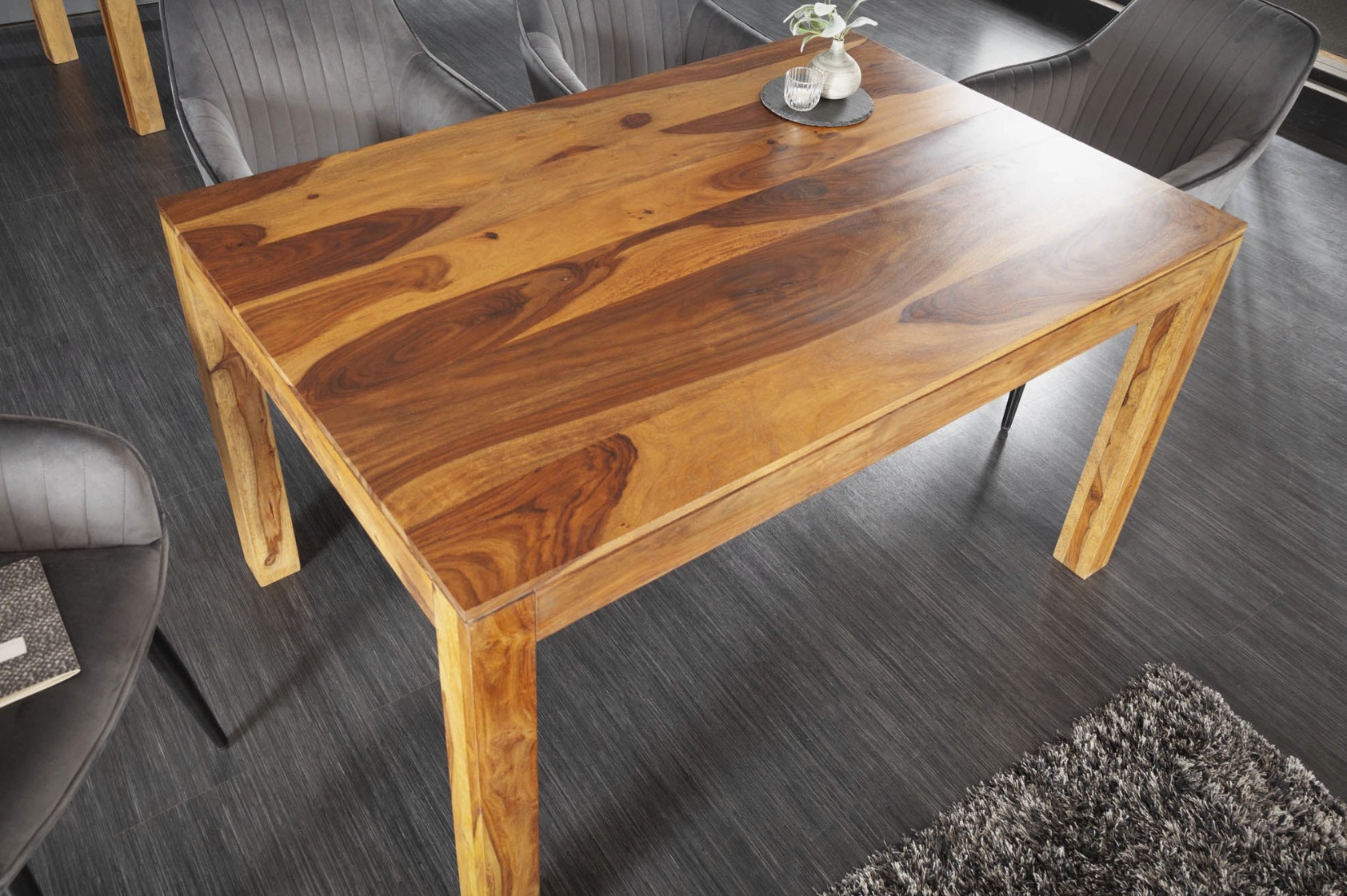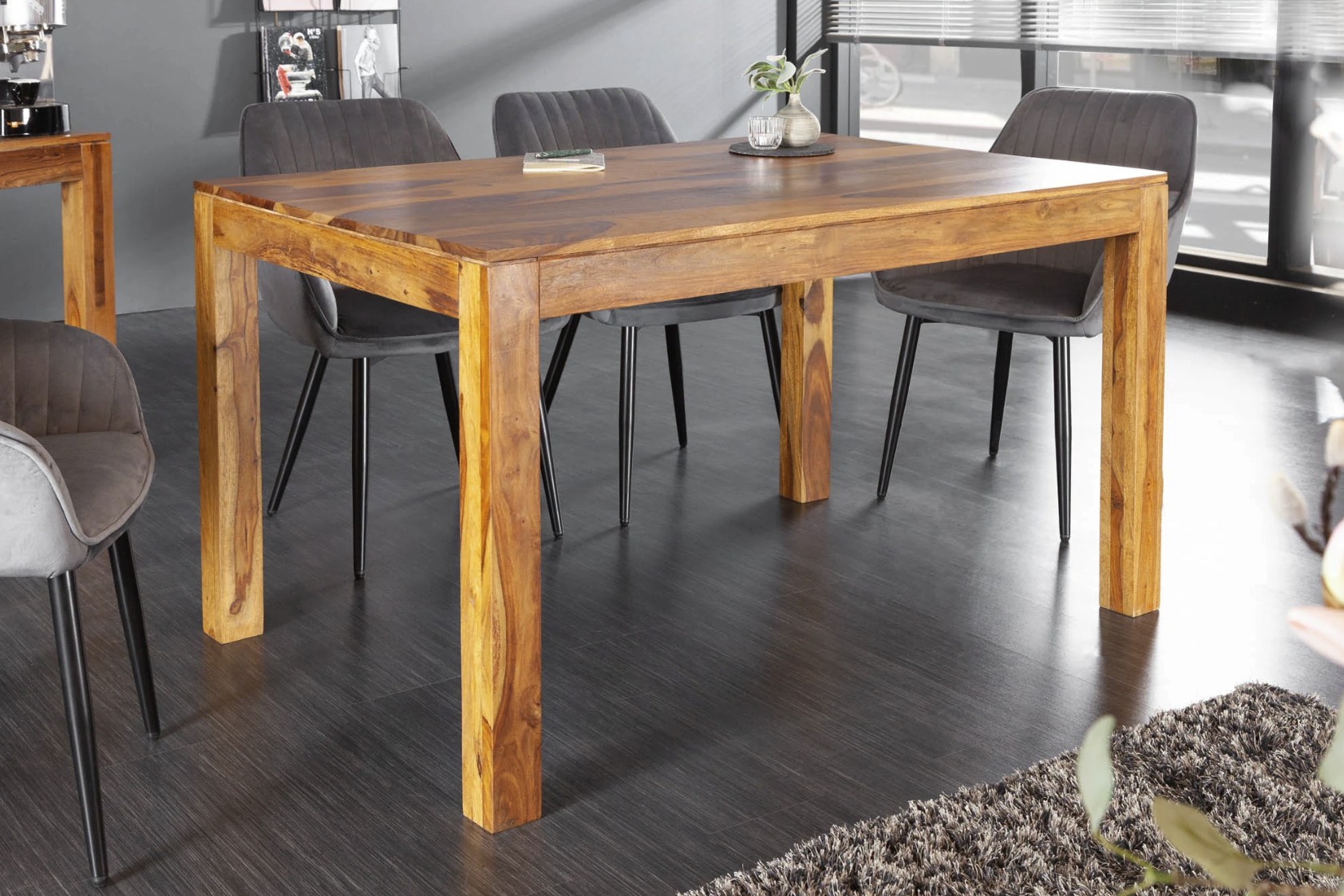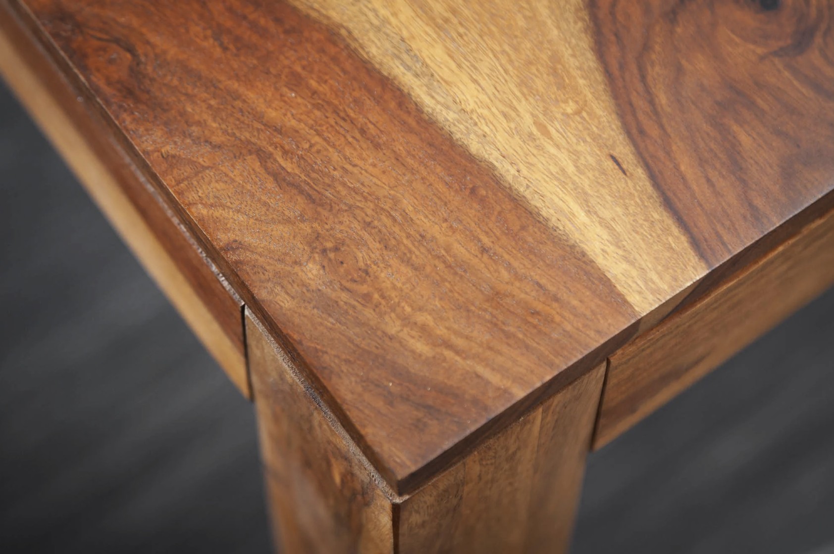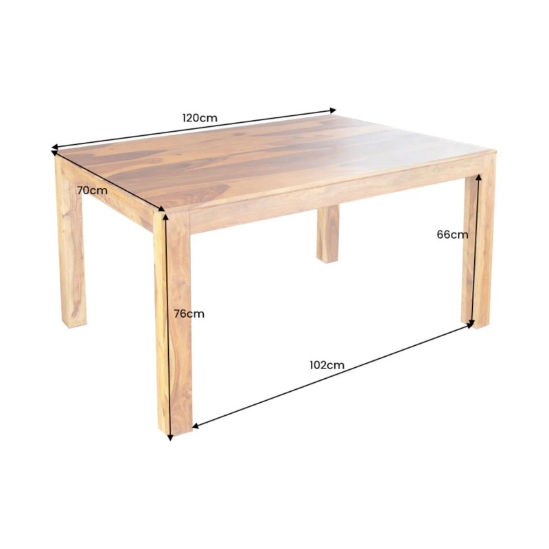 La table de salle à manger TAVINA est conçue en bois massif pour offrir un rendu naturel et une robustesse au quotidien. Avec son format rectangulaire de 120 cm, elle est idéale pour les petites salles à manger, cuisines ou espaces réduits tout en conservant un style rustique et chaleureux.