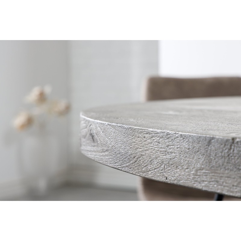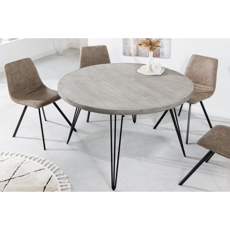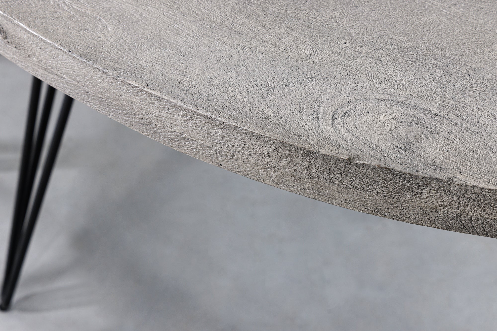 Son plateau rond en bois massif de manguier apporte chaleur et caractère, tandis que la base en métal noir souligne une touche contemporaine élégante. Sa conception solide et équilibrée assure une excellente stabilité. Avec une distance entre les pieds de 81 cm et des pieds fins de 1,2 × 1,2 cm, elle combine finesse et robustesse, idéale pour un coin repas moderne.