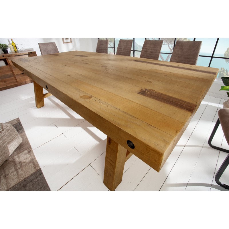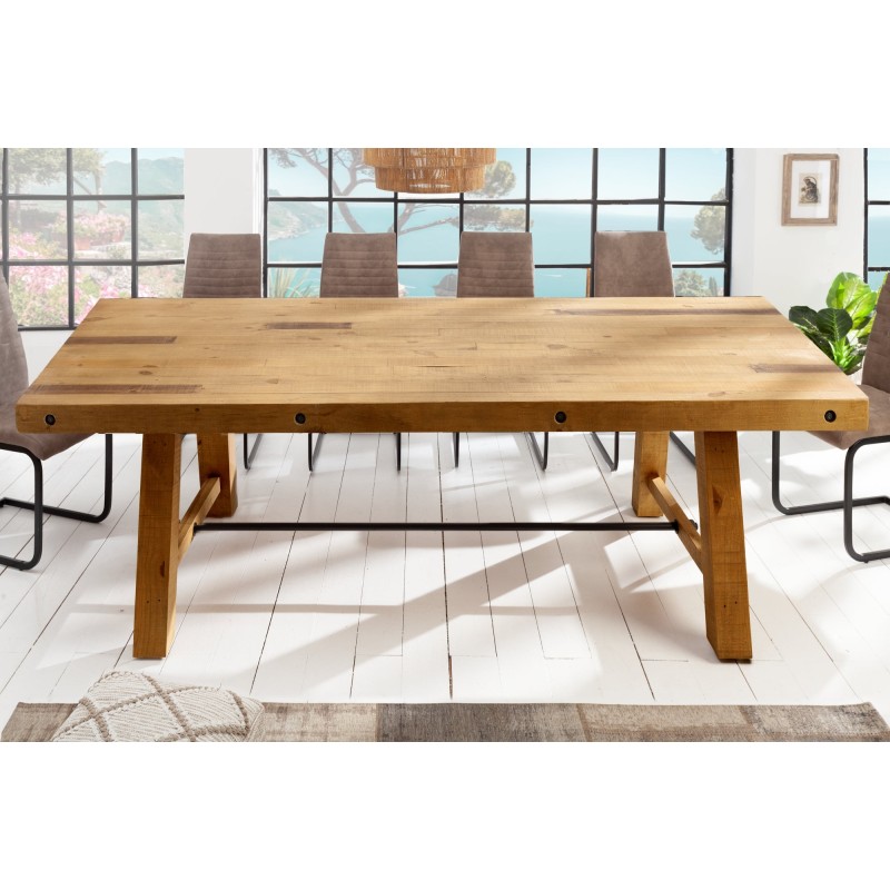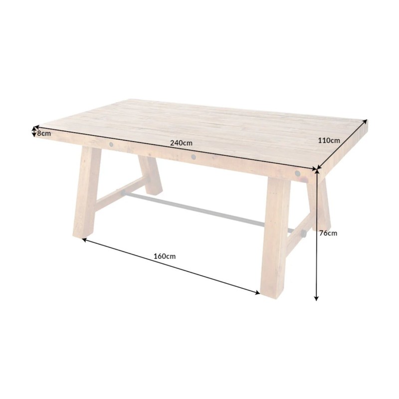Avec ses 240 cm de longueur, la table RANCHO offre un espace généreux pouvant accueillir jusqu’à 10 personnes. Le plateau épais de 80 mm repose sur une base solide, garantissant stabilité et résistance à l’usage quotidien. Sa distance entre les pieds de 160 cm permet une assise confortable, même pour les chaises volumineuses. Ce meuble allie charme du bois recyclé et solidité du savoir-faire artisanal européen.