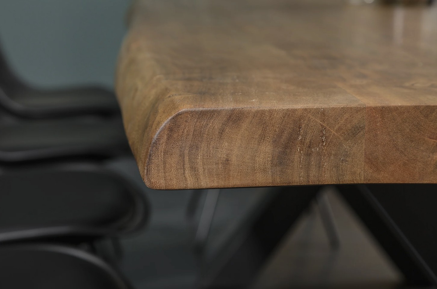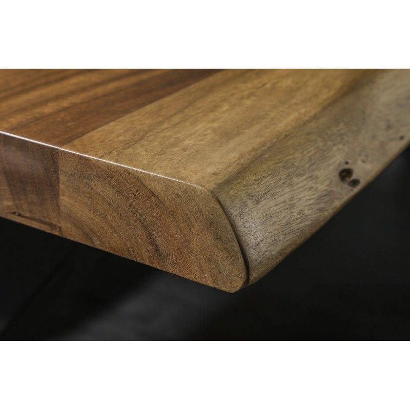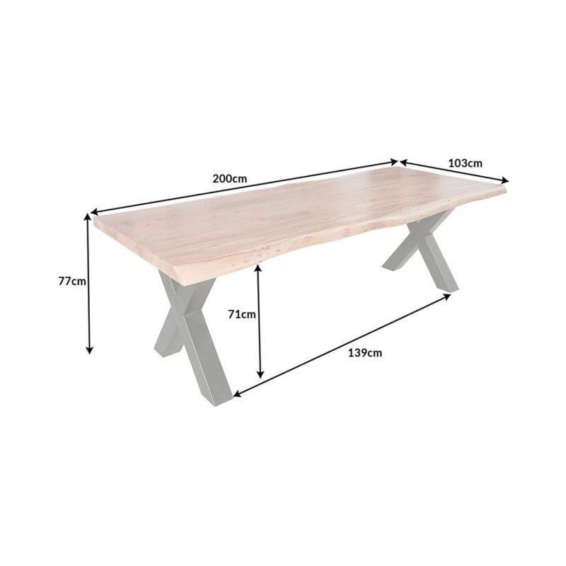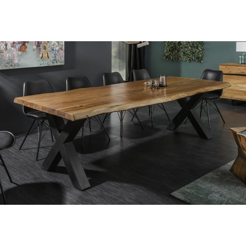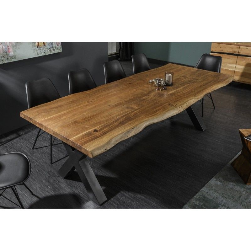 Mit Authentizität und Modernität vereint, besticht der Esstisch ARKAYA 200 cm durch seine Konstruktion aus lackiertem massivem Akazienholz und seinem Gestell aus schwarzem Metall in X-Form. Sein industrielles und warmes Design passt perfekt in ein zeitgenössisches oder rustikales Dekor. Es ist ein zentrales Möbelstück, das Ihrer Essecke Charakter verleihen wird.