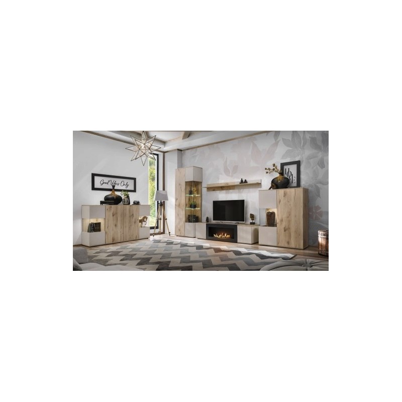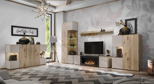 La collection ERINA a été pensée pour aménager un séjour complet et harmonieux. Cet ensemble avec cheminée bio-éthanol constitue une solution idéale pour combiner rangements pratiques et atmosphère cosy.