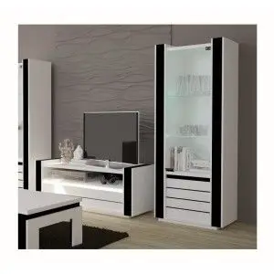 | Inhalt des Pakets | 2 x Vitrinen (mit LEDs) + 1 x TV-Möbel (mit LEDs) + 1 x Couchtisch |