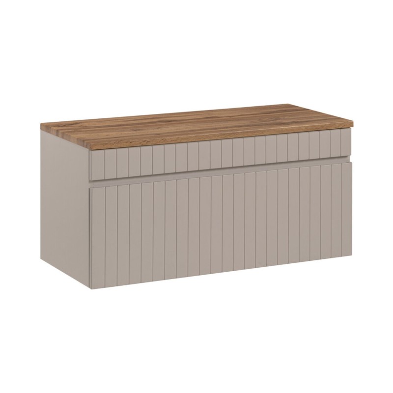 Badezimmer-Set ICON: Waschbeckenunterschrank 100cm Kaschmir + Arbeitsplatte in Holzoptik für Waschbecken