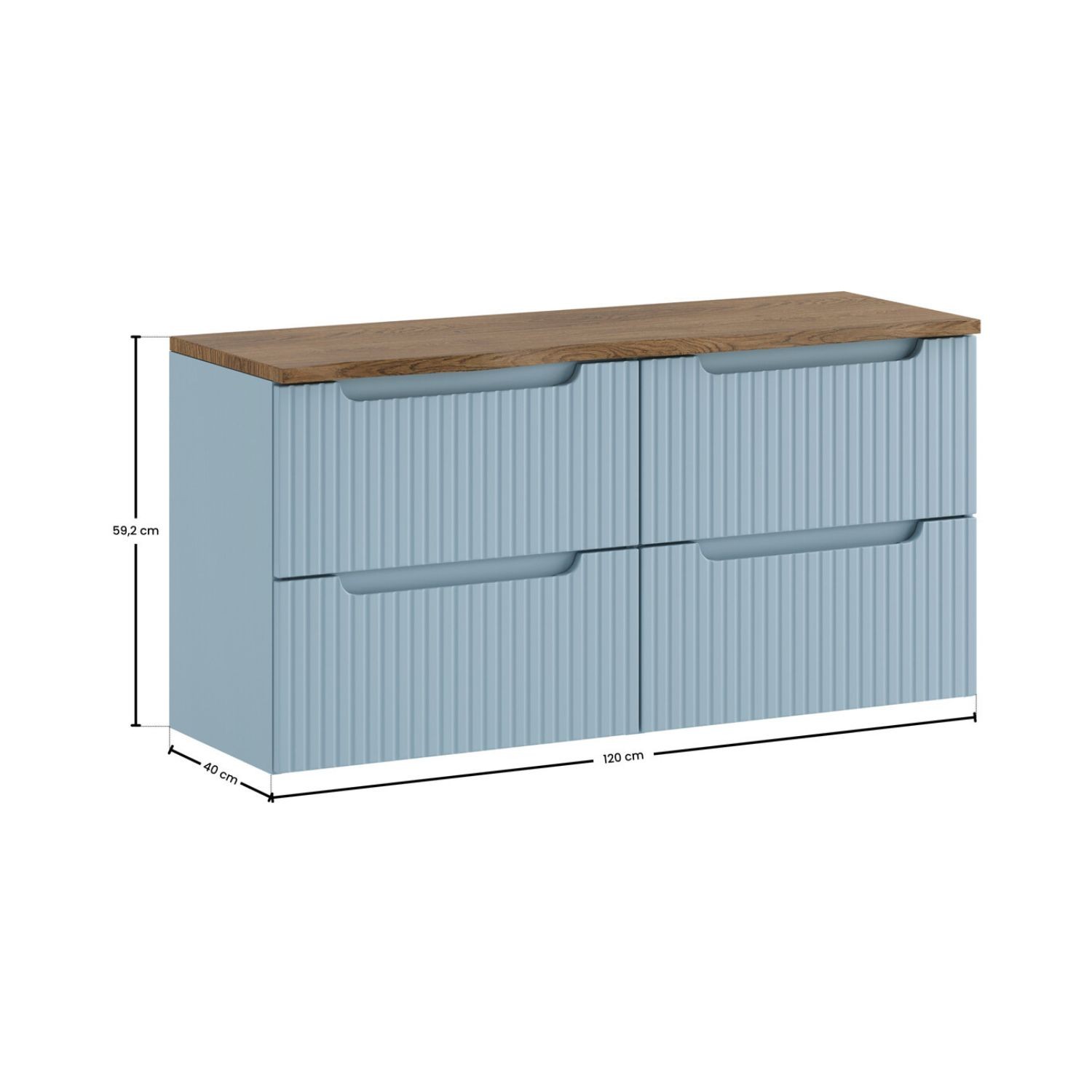 Die vertikal gerillten Fronten verstärken den Designstil des Möbels, während sie Relief und Charakter hinzufügen.