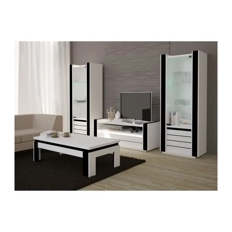 Couchtisch LINA in Weiß und Glänzend Schwarz – 125 x 42 x 65 cmDer Couchtisch LINA vereint Eleganz und Modernität mit seinem Design in Weiß und glänzendem Schwarz. Mit den Maßen von 125 cm Länge, 42 cm Höhe und 65 cm Breite ist er ein ideales Zentralmöbel für Ihr Wohnzimmer. Seine MDF-Platte bietet eine praktische und ästhetische Oberfläche für Ihre Entspannungsmomente.Produkteigenschaften:Produkttyp: CouchtischMaße: 125 cm (Länge) x 42 cm (Höhe) x 65 cm (Breite)Farbe: Weiß und Schwarz glänzendGewicht: 29 kgAnzahl der Pakete: 1Vorteile des Couchtisches LINA:Modernes Design: Die Oberflächen in Weiß und Schwarz glänzend fügen Ihrem Interieur eine raffinierte Note hinzu.Hochwertige Materialien: Die MDF-Platte sorgt für eine langlebige und pflegeleichte Oberfläche.Ideale Maße: Perfekt, um Ihr Wohnzimmer mit zeitgenössischem Stil zu ergänzen und eine praktische Oberfläche zu bieten.Vielseitigkeit: Passt leicht zu verschiedenen Dekorationsstilen, sei es modern, minimalistisch oder schick.Warum sollten Sie unseren Couchtisch LINA wählen?Eleganz und Funktionalität: Vereint ein elegantes Design mit einer Funktionalität, die den täglichen Bedürfnissen entspricht.Haltbarkeit: Entwickelt mit hochwertigen Materialien, um eine lange Lebensdauer und ein gepflegtes Aussehen zu gewährleisten.Leichte Pflege: Die glänzende Oberfläche ist leicht zu reinigen, was