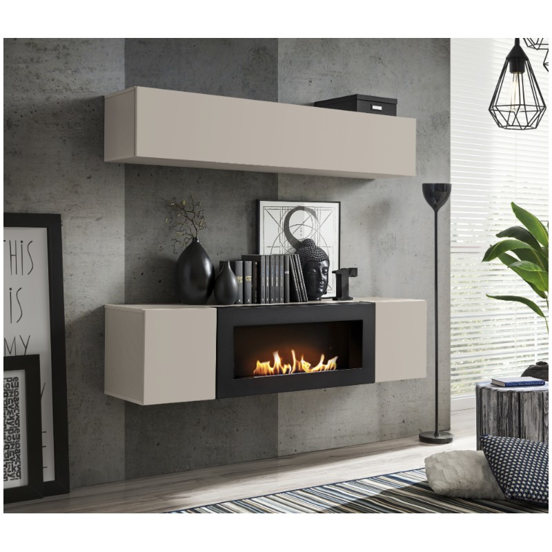 Modernisez votre salon avec la composition murale FLY cachemire, un ensemble élégant et pratique qui associe design scandinave et fonctionnalité. Cette combinaison regroupe une vitrine murale horizontale et un meuble TV doté d’une cheminée bio-éthanol intégrée.