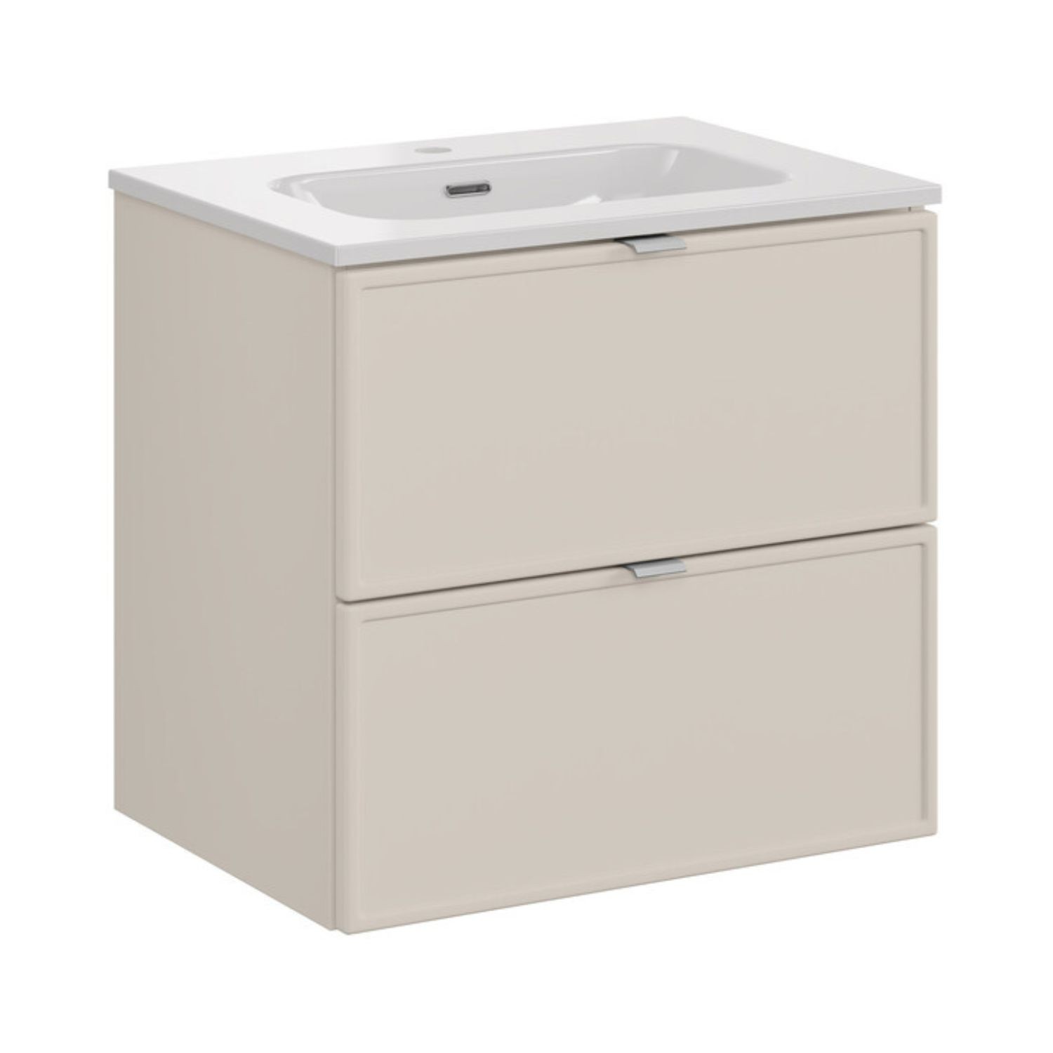 Optimieren Sie die Einrichtung Ihres Badezimmers mit diesem BRAZZA Set 60 cm, bestehend aus einem Unterschrank mit Schubladen und einem rechteckigen, eingebauten Keramikwaschbecken. Seine matte Kaschmirfarbe verleiht eine sanfte und zeitgenössische Note, ideal, um eine elegante und warme Atmosphäre in einem kompakten Raum zu schaffen.