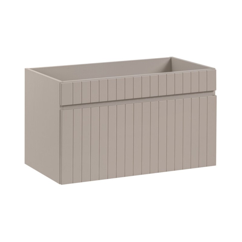 Das Set ICON 180 cm besticht durch einen modernen und kühnen Stil, dank seiner matten Kaschmirfarbe kombiniert mit sichtbaren dunkelholzfarbenen Nischen. Sein großes Format von 180 cm ist ideal für ein geräumiges und zeitgenössisches Badezimmer.