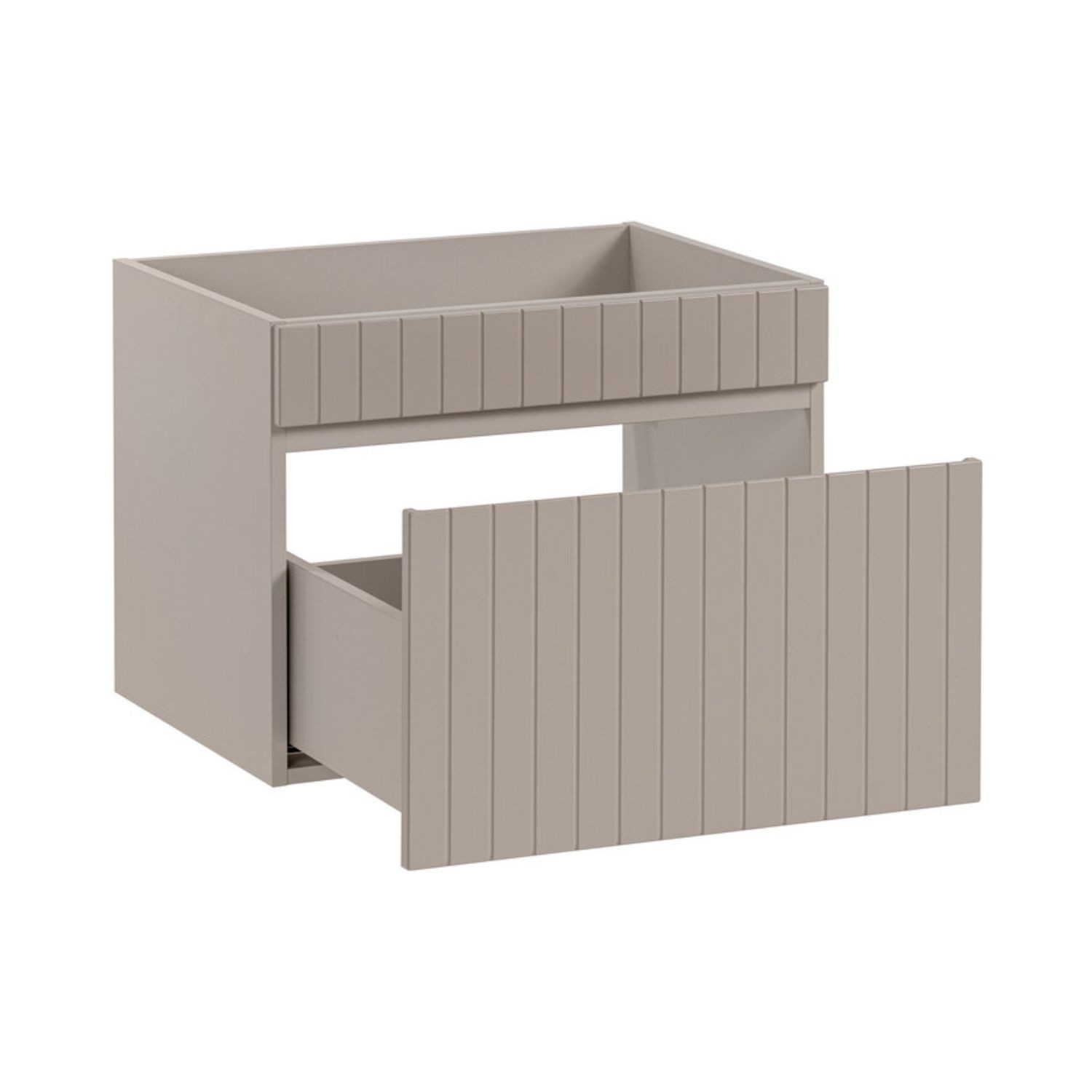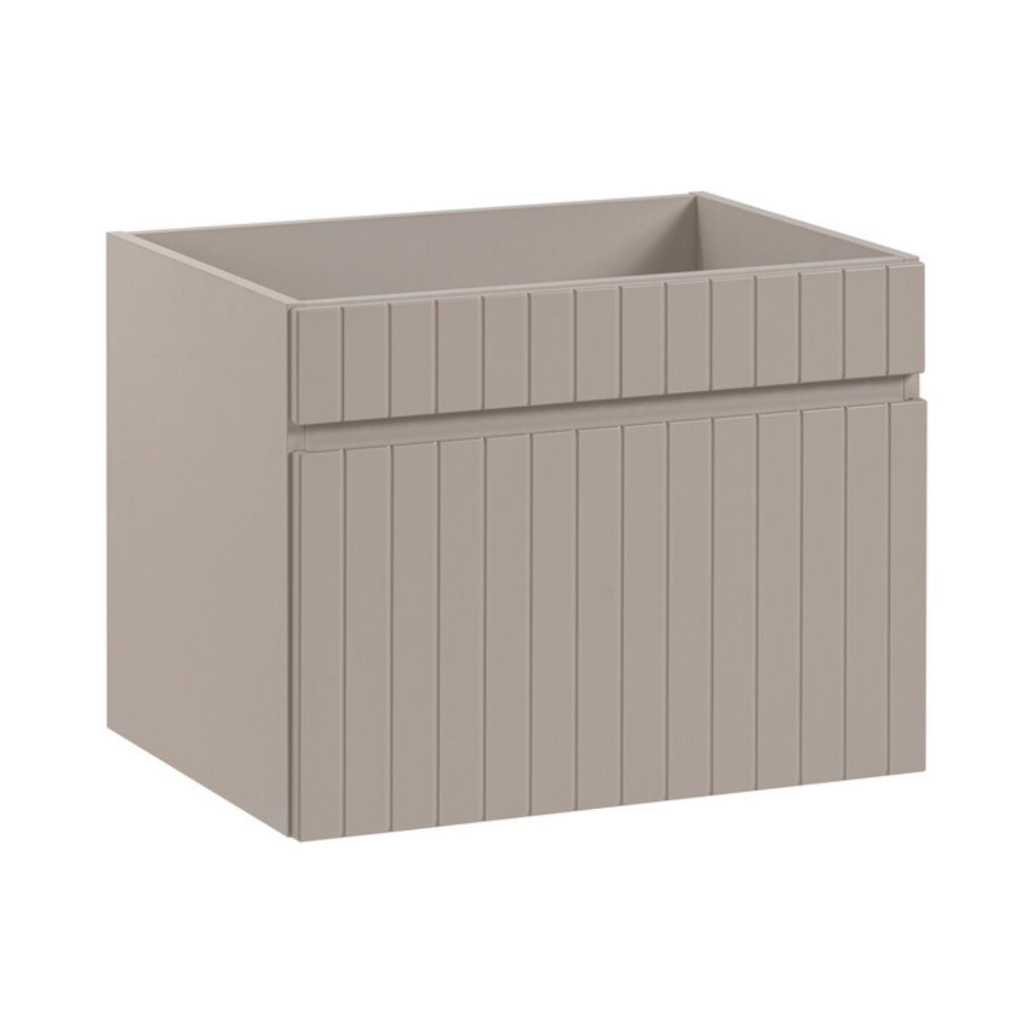 Das Set ICON 140 cm vereint Eleganz und Funktionalität in einem perfekt für mittelgroße Badezimmer geeigneten Format. Seine matte Kaschmirfarbe harmoniert wunderbar mit einer Arbeitsplatte für das Waschbecken und einem Möbelstück mit zwei sichtbaren Nischen in dunklem Holzdekor für ein warmes und zeitgemäßes Erscheinungsbild.