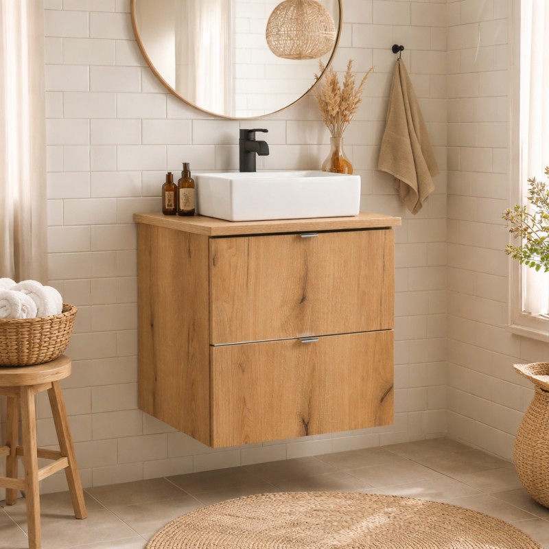 | Inhalt des Pakets | 1 meuble sous vasque 2 tiroirs + 1 plan pour vasque + 1 vasque à poser |