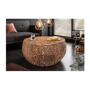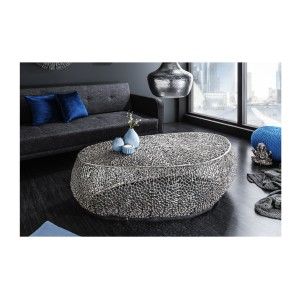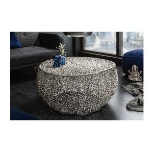 Table baja VIRELLO – Mesa baja redonda Ø80 cm – Piedra natural gris oscuro...