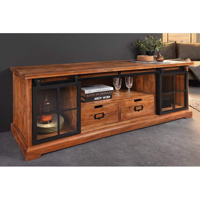 Meuble TV 160 cm bois massif acacia et métal noir – Collection LUMBER