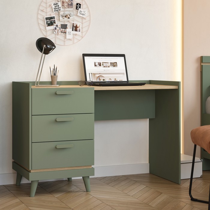 Vista rápida Vista rápida Añadir a la cesta available NOKI Escritorio estilo escandinavo NOKI – 3 cajones – Verde y madera – 120x80x50 cm 299,00 € Nuevo Precio