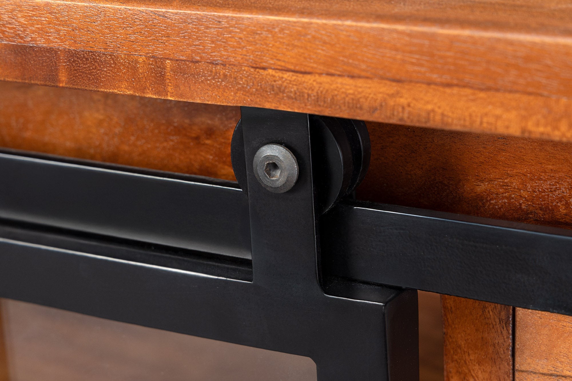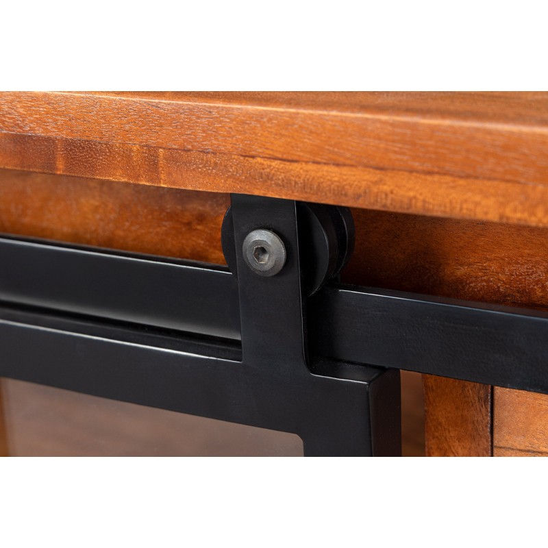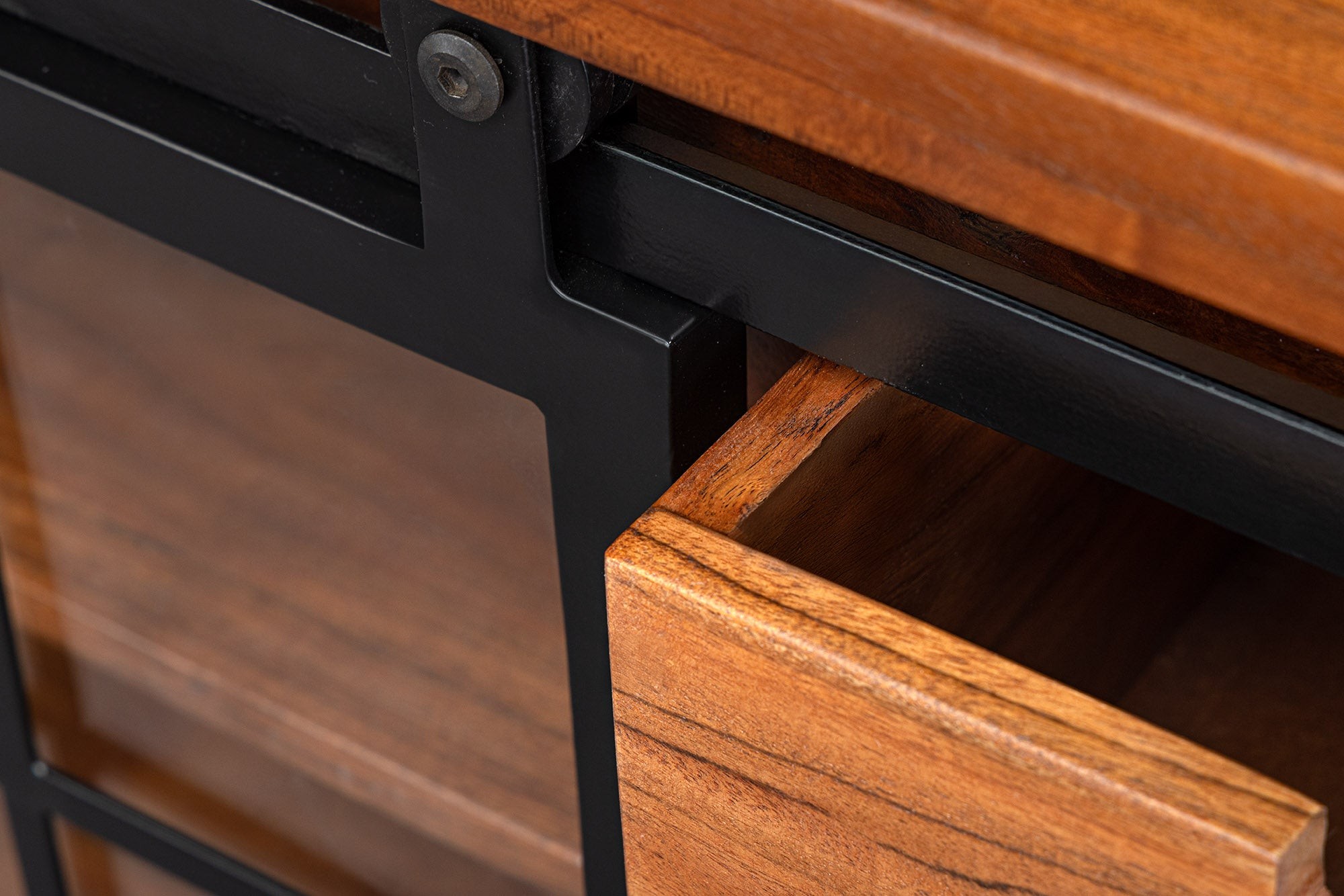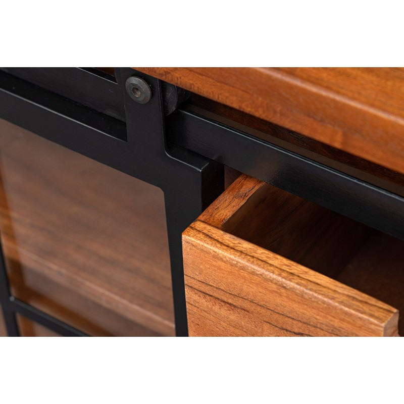 Ce buffet LUMBER 150 cm s’inscrit dans la continuité du meuble TV de la même collection, confirmant l’identité cohérente de cette gamme au style atelier industriel vintage. Il associe le bois massif d’acacia à des portes coulissantes vitrées façon verrière et des poignées étiquettes en métal noir, pour un rendu à la fois authentique, pratique et résolument tendance.