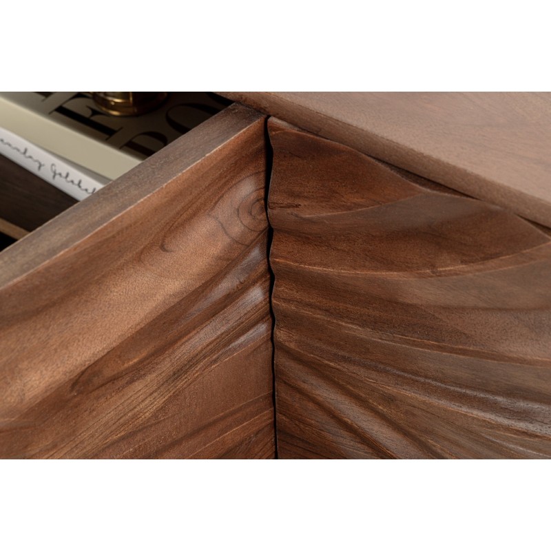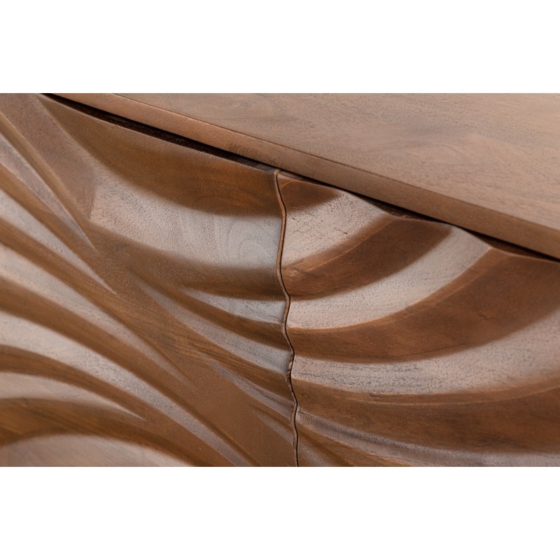 Alliant puissance visuelle et praticité, le buffet SYRMA 175 cm en bois massif d’acacia séduit par son design 3D sculpté aux lignes tourbillonnantes. Inspirées d’une rafale de vent, d’une vague en mouvement ou encore de l’énergie brute de la nature, ses façades offrent un rendu unique et saisissant.