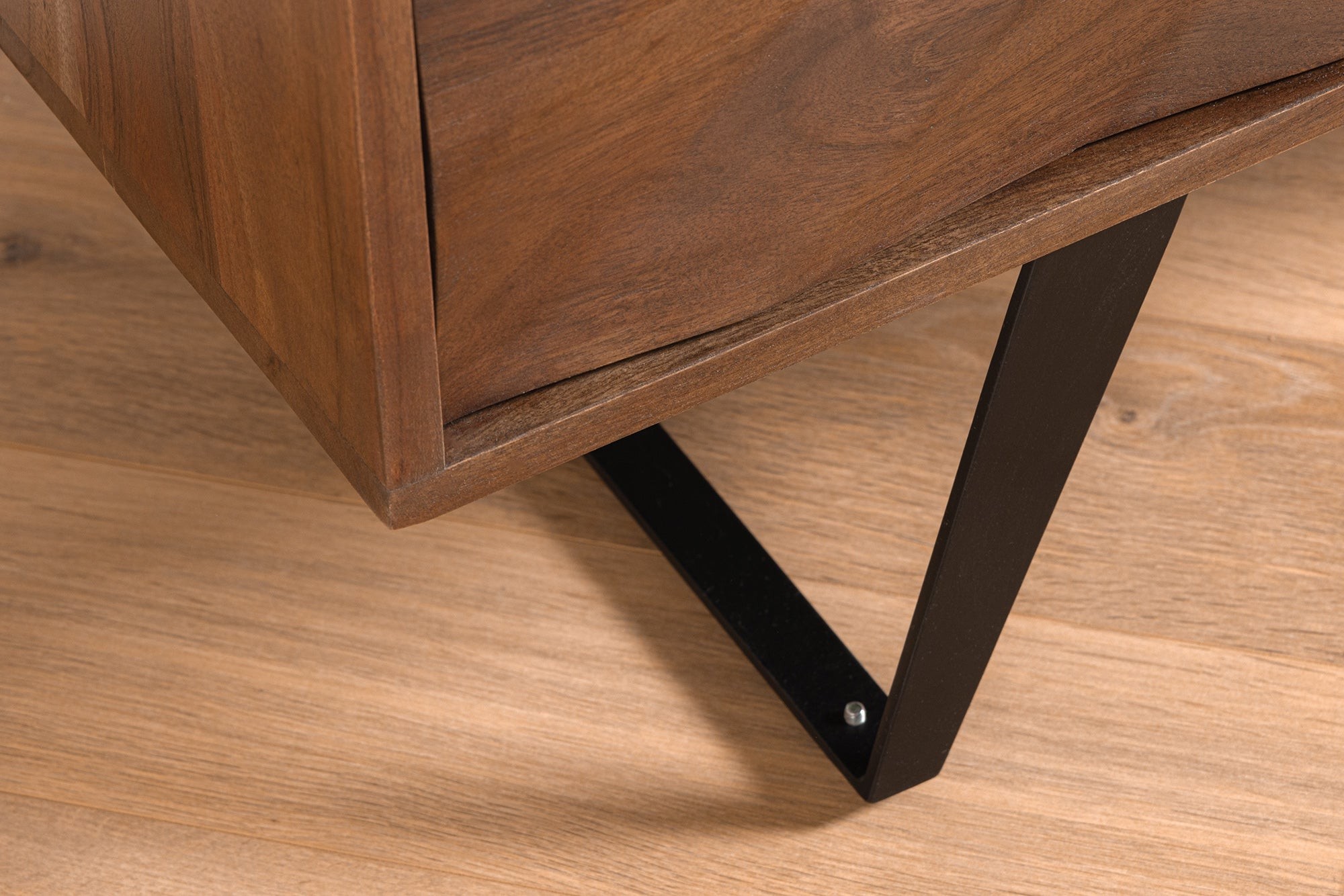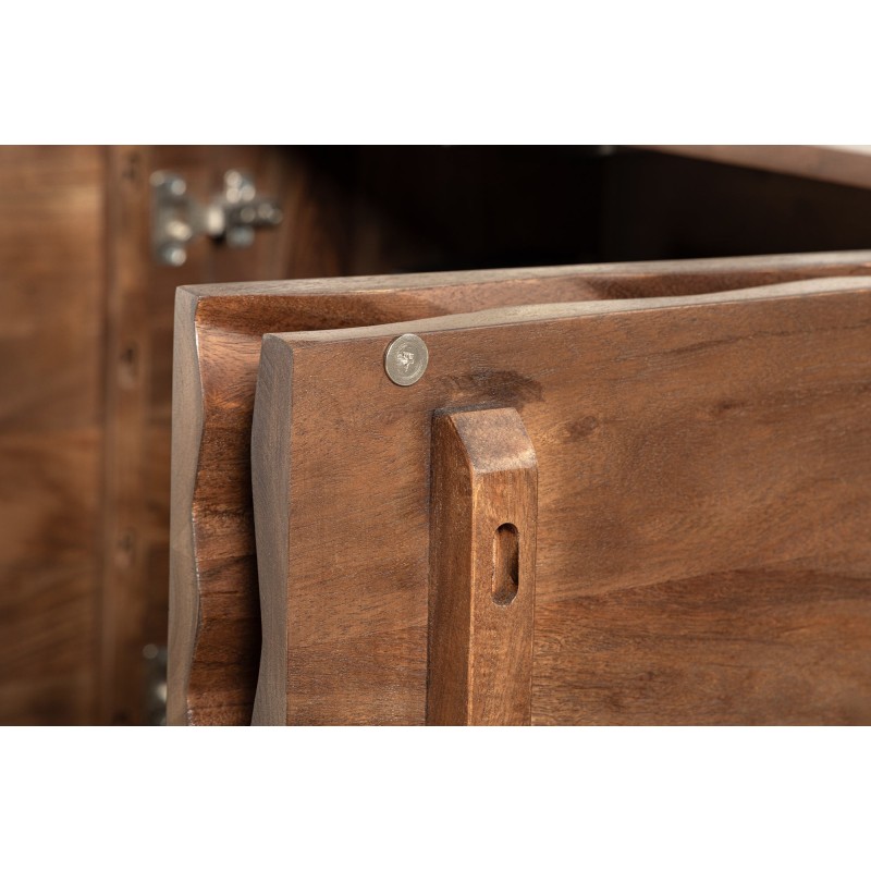 Ce buffet design se compose de 4 portes battantes ouvrant sur de grands espaces de rangement dotés d’étagères intérieures. Sa structure en acacia massif et son piètement en métal noir assurent une stabilité parfaite et une robustesse à toute épreuve.