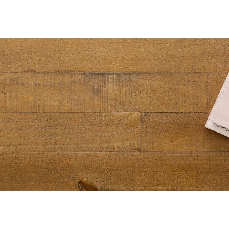 Le buffet repose sur une structure en acier noir à la finition mate, qui souligne ses lignes franches et industrielles. Le bois de pin recyclé, avec ses teintes brunes et ses irrégularités naturelles, apporte chaleur et personnalité à chaque pièce.