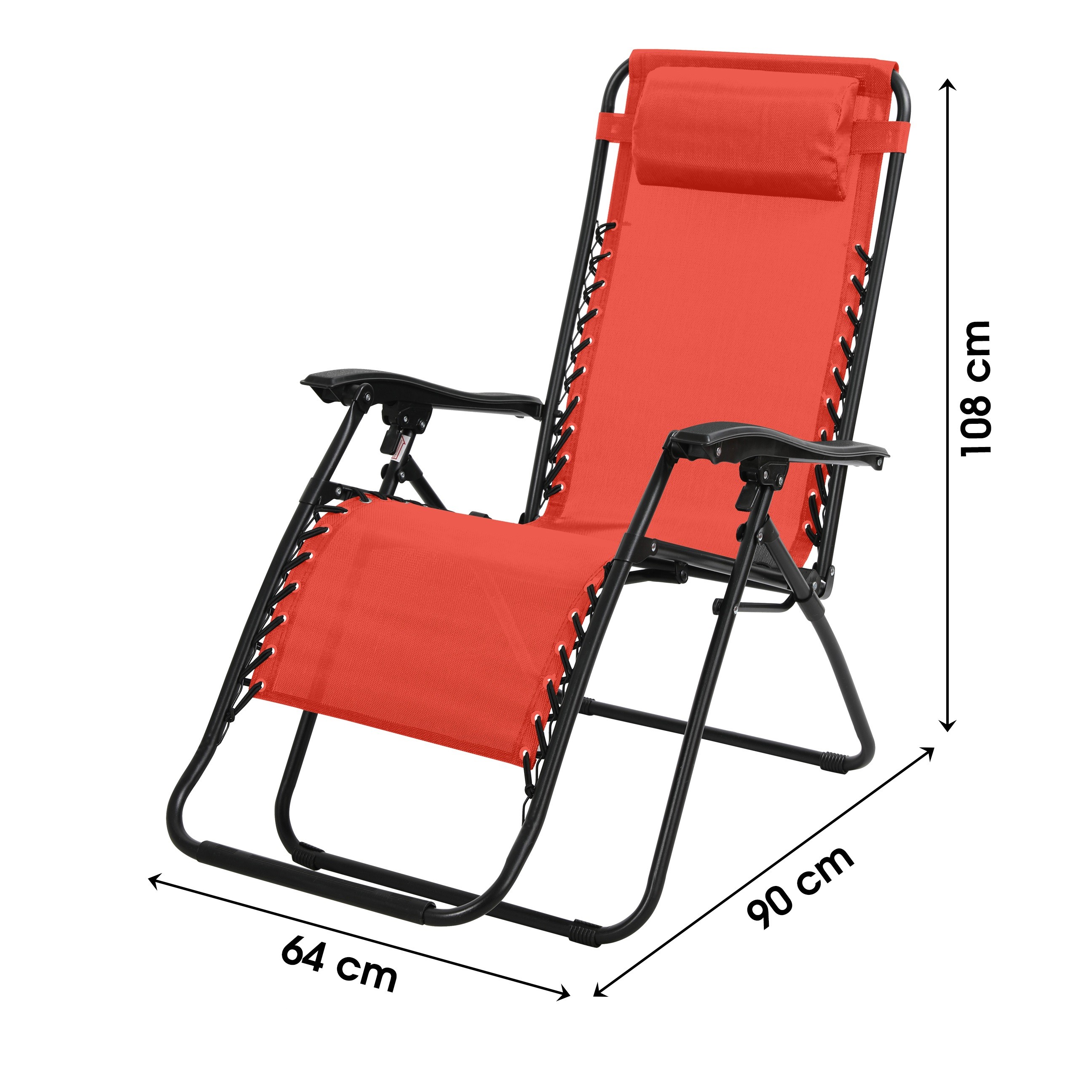 Sillón reclinable de exterior – Confort y estilo en rojoAñade un toque de dinamismo y comodidad a tu espacio exterior con el sillón reclinable de exterior en color rojo. Este sillón es ideal para relajarse en el jardín, en la terraza o en el balcón. Con unas dimensiones de 90 cm de ancho, 108 cm de altura y 64 cm de profundidad, este sillón reclinable combina un diseño moderno y funcionalidad para disfrutar de los días más bellos con total serenidad.Características del producto:Tipo de producto: Sillón reclinable de exteriorDimensiones: 90 cm (ancho) x 108 cm (altura) x 64 cm (profundidad)Color: RojoPeso: 7 kgNúmero de paquetes: 1Materiales: Estructura de metal robusto con asiento de tela resistente a las inclemencias del tiempo y a los rayos UVVentajas del sillón reclinable de exterior:Diseño vibrante: El color rojo aporta un toque de modernidad y vivacidad a tu espacio exterior.Confort óptimo: Su forma ergonómica y su asiento inclinado garantizan una relajación cómoda para todos tus momentos de descanso.Robustez: Diseñado con materiales de alta calidad, este sillón resiste a las inclemencias del tiempo y a los rayos UV para un uso prolongado.Facilidad de movimiento: Diseñado ligeramente con un peso de 7 kg, es fácil de mover según tus necesidades.¿Por qué elegir el sillón reclinable de exterior en color rojo?Estilo y confort: Combina un diseño audaz y un asiento cómodo para embellecer tu espacio de relajación al aire libre.Facilidad de mantenimiento: Se limpia fácilmente con un paño húmedo, garantizando un mantenimiento sin esfuerzo.Versatilidad: Ideal para el jardín, la terraza o el balcón, este sillón reclinable se adapta perfectamente a todas tus necesidades de relajación.