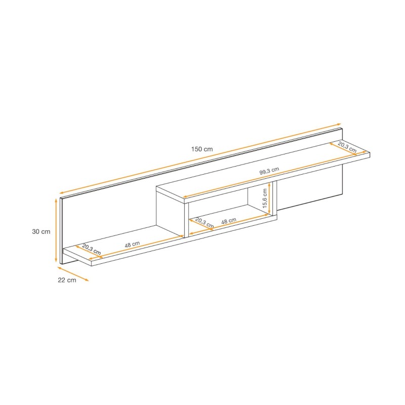 D’une longueur de 150 cm, cette étagère offre une belle surface pour exposer vos livres, cadres, objets déco ou plantes. Fabriquée en panneaux de particules de première qualité, elle garantit robustesse et stabilité tout en conservant une ligne fine et moderne.