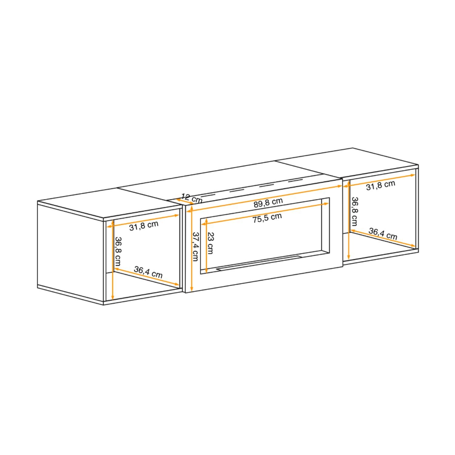 Ce meuble TV mural dispose de 2 portes abattantes sur les côtés, chacune offrant un espace de rangement pratique pour vos accessoires multimédia ou objets déco. La cheminée centrale, élégamment intégrée, apporte une touche unique et tendance à votre intérieur.