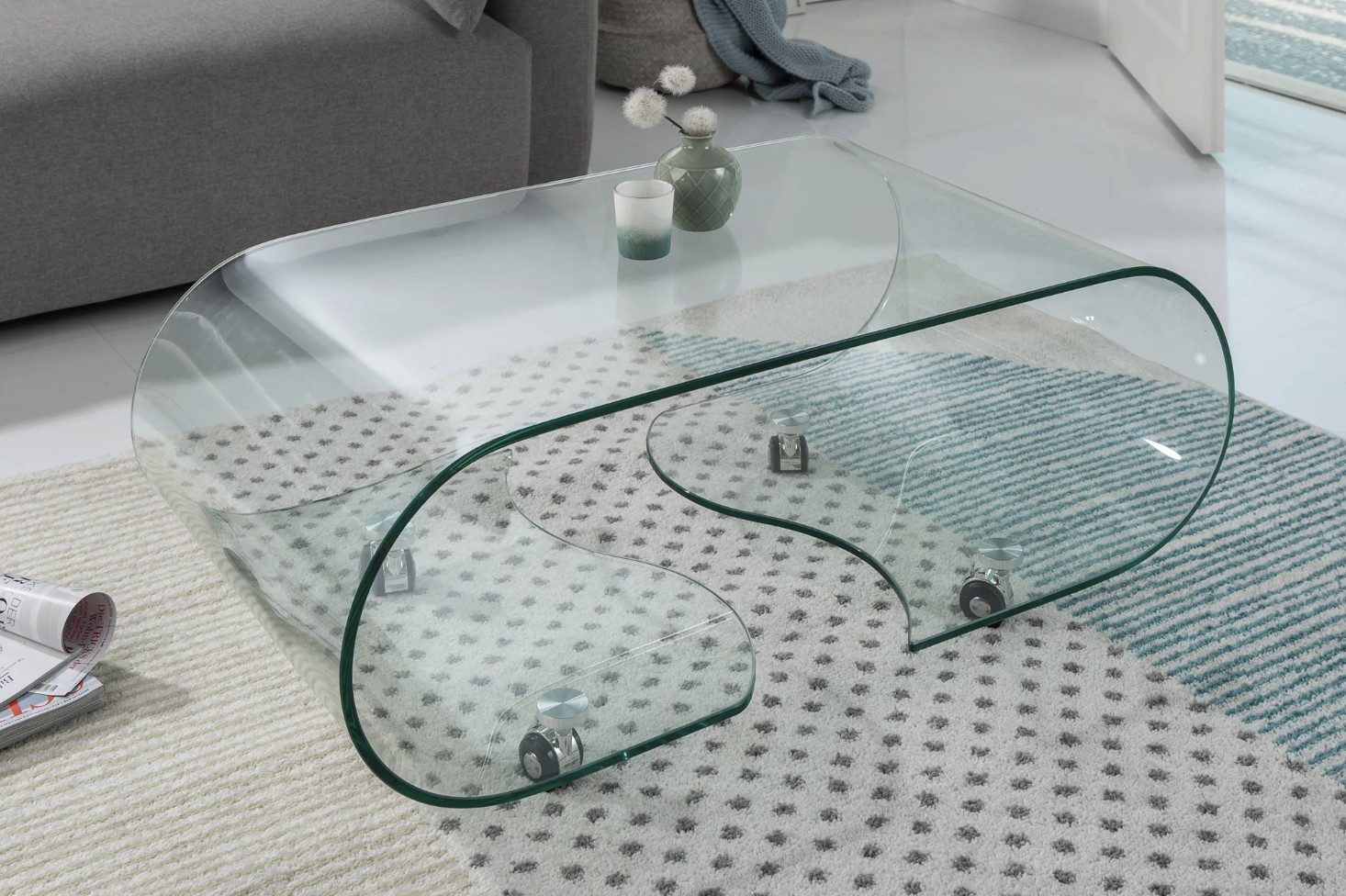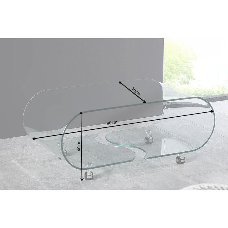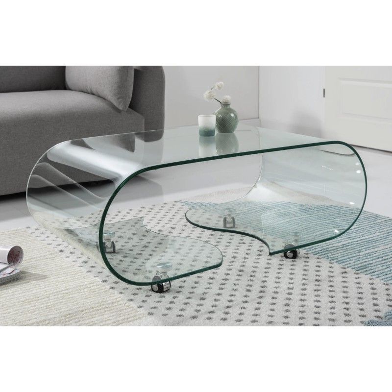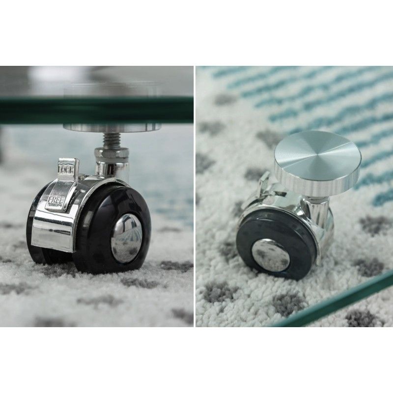 Réalisée en verre trempé épais, cette table basse garantit une excellente résistance à l’usage. Les roulettes intégrées permettent de la déplacer facilement selon vos besoins, rendant l’aménagement du salon plus flexible. Son aspect verre total met en valeur la lumière et s’intègre parfaitement dans des intérieurs modernes et épurés.