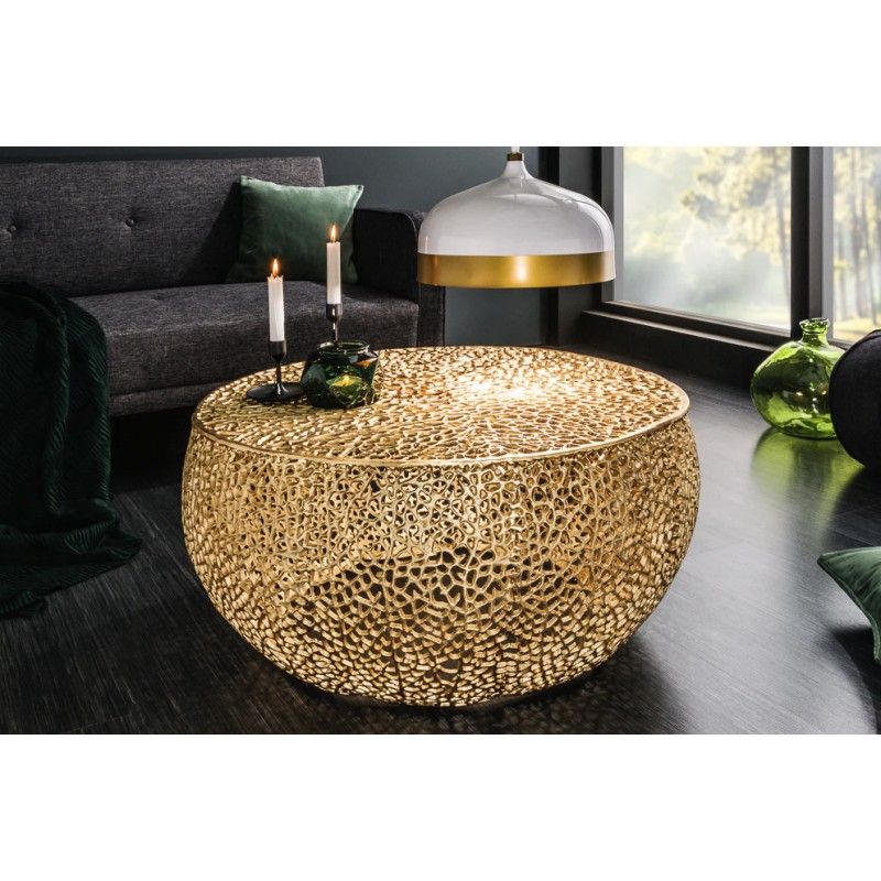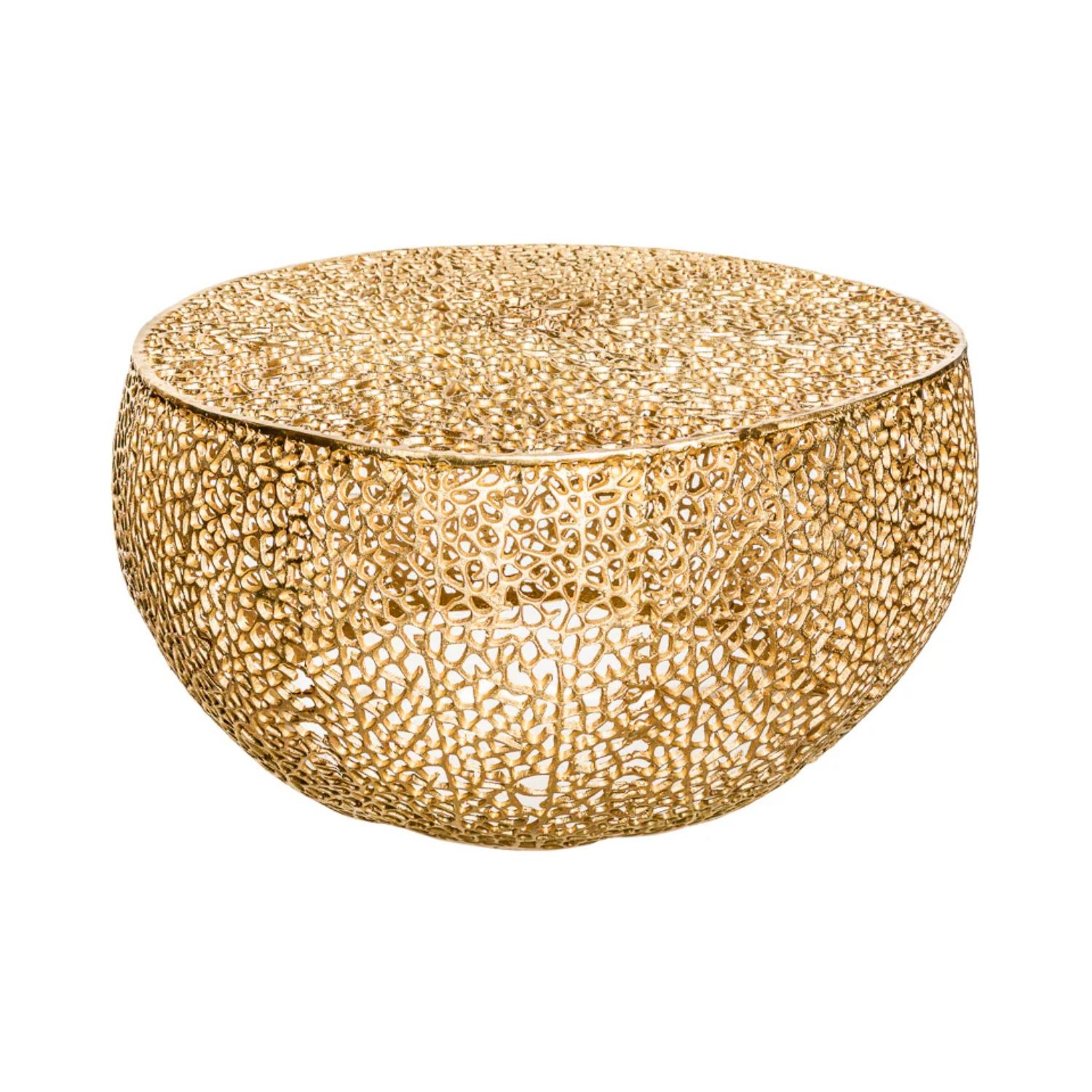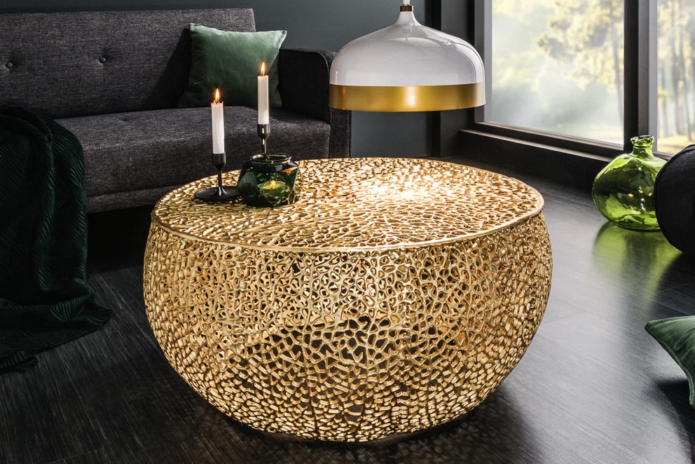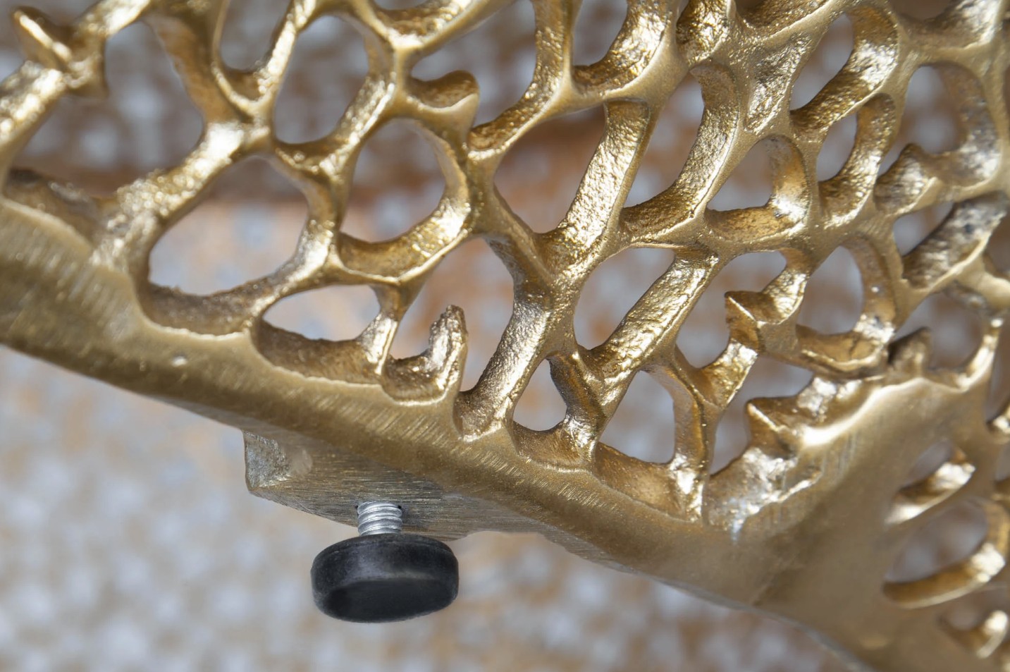 Entièrement conçue en aluminium, la table basse METRIX assure une robustesse durable et une excellente stabilité. Son motif ajouré aux formes arrondies, travaillé de manière fine et homogène sur l’ensemble de la structure, crée un jeu de lumière élégant. La finition brillante dorée accentue son caractère design et transforme cette table basse en véritable objet décoratif.