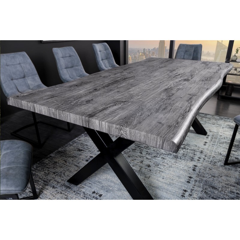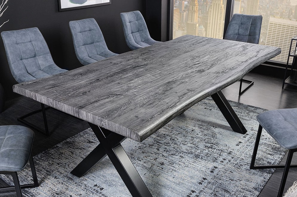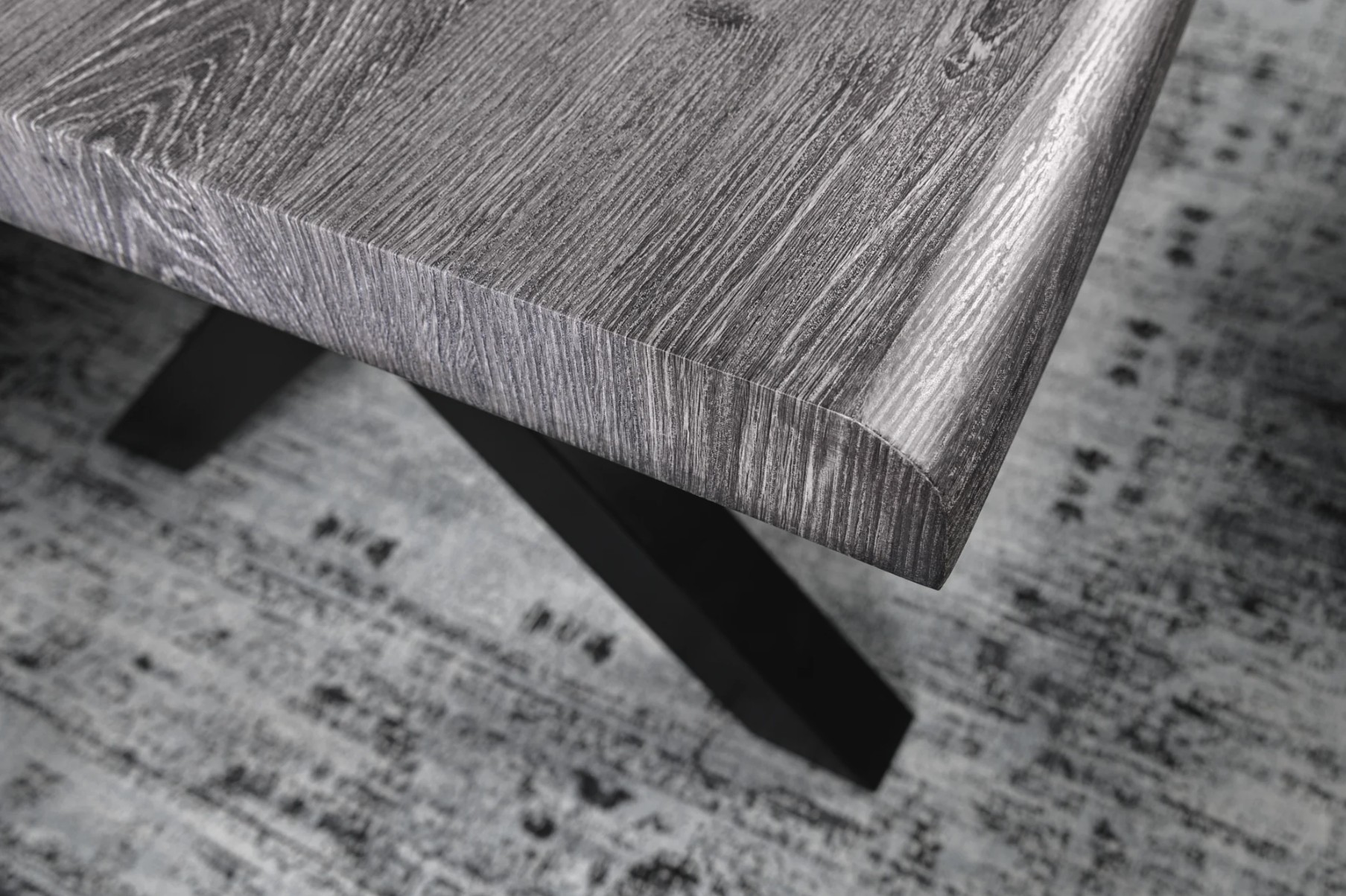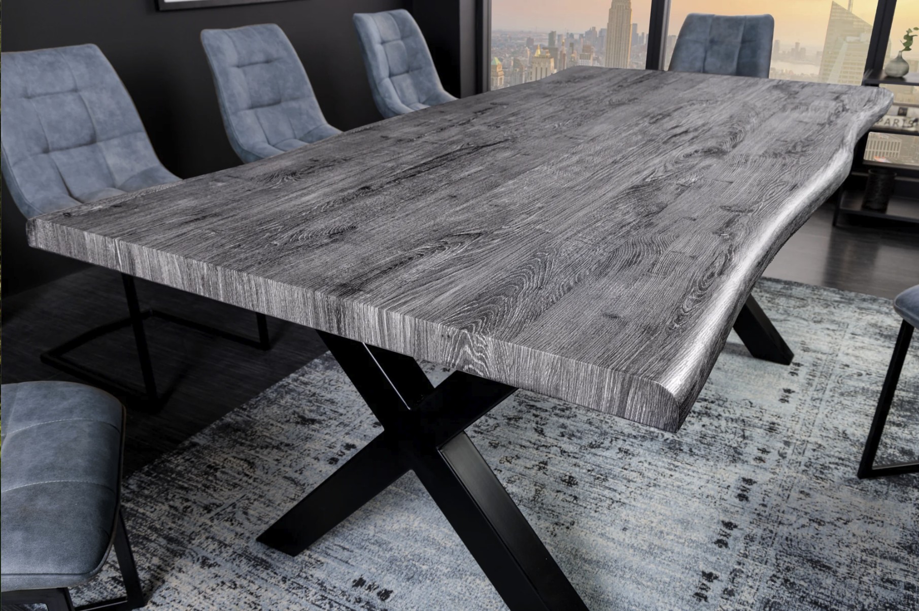Ajoutez une touche contemporaine et industrielle à votre intérieur avec la table de salle à manger RIVET. Avec son plateau en bois gris au bord naturel et sa structure en métal noir, elle allie robustesse, modernité et authenticité.
