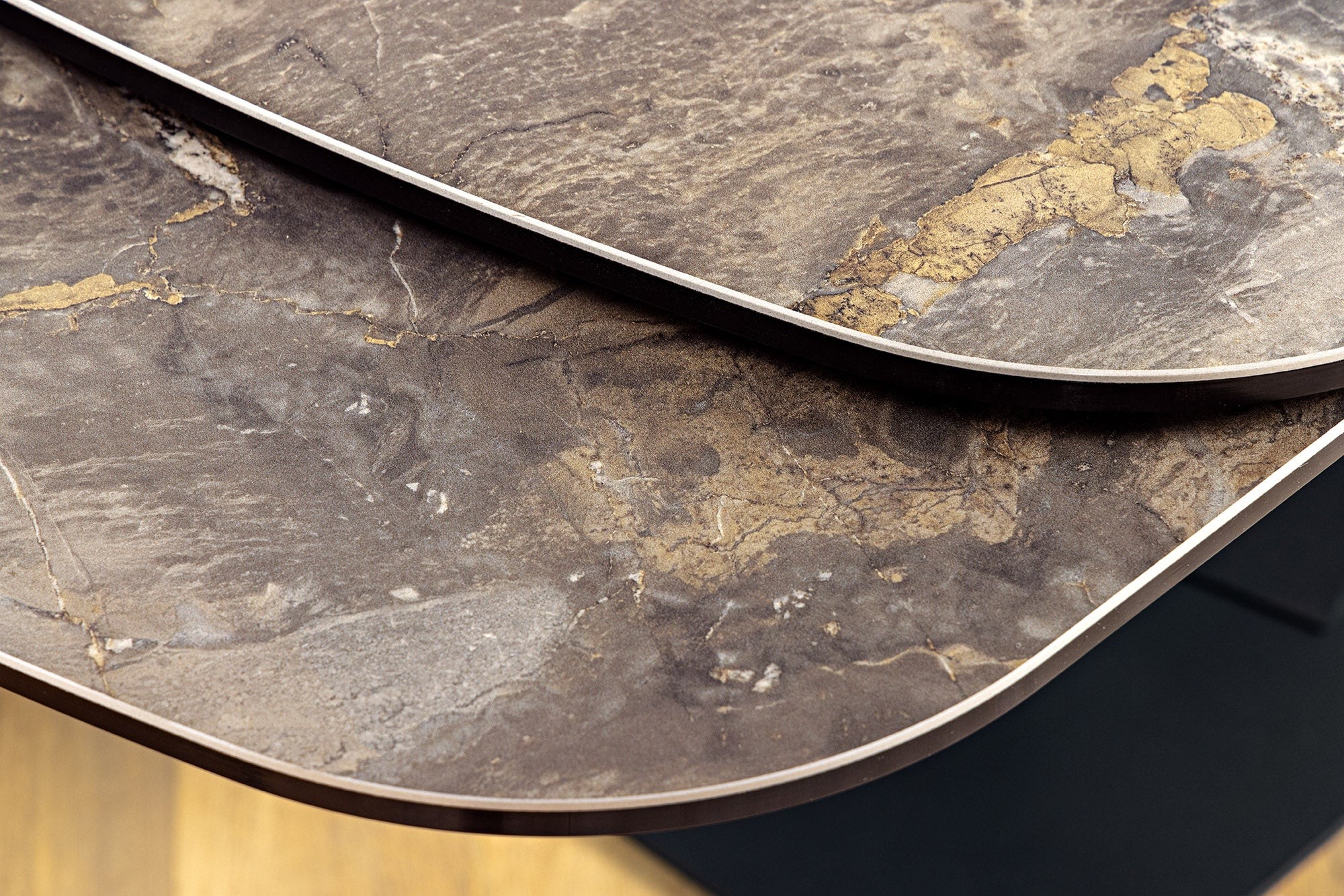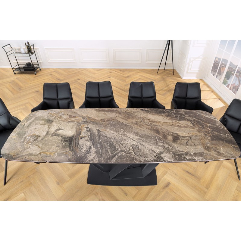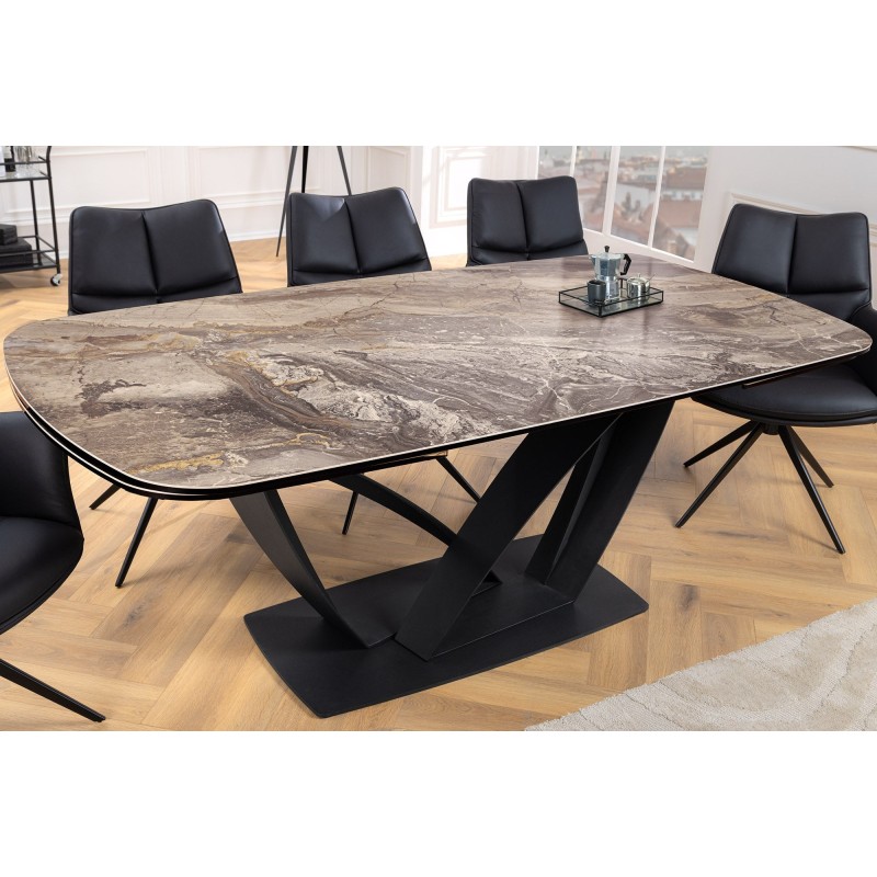 Craquez pour la table de salle à manger AZURA, un modèle qui allie style moderne et praticité. Son plateau en céramique effet marbre taupe séduit par son look raffiné et intemporel, tandis que sa structure en métal assure robustesse et stabilité. Avec son design contemporain, elle devient la pièce maîtresse de votre salle à manger.