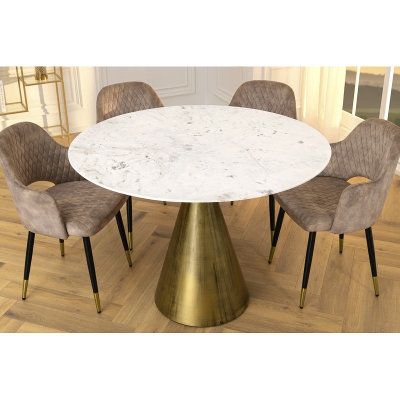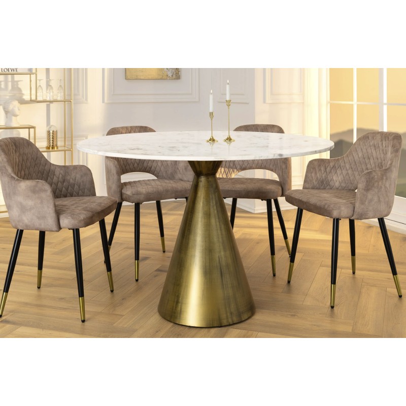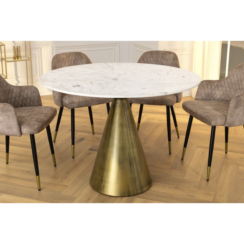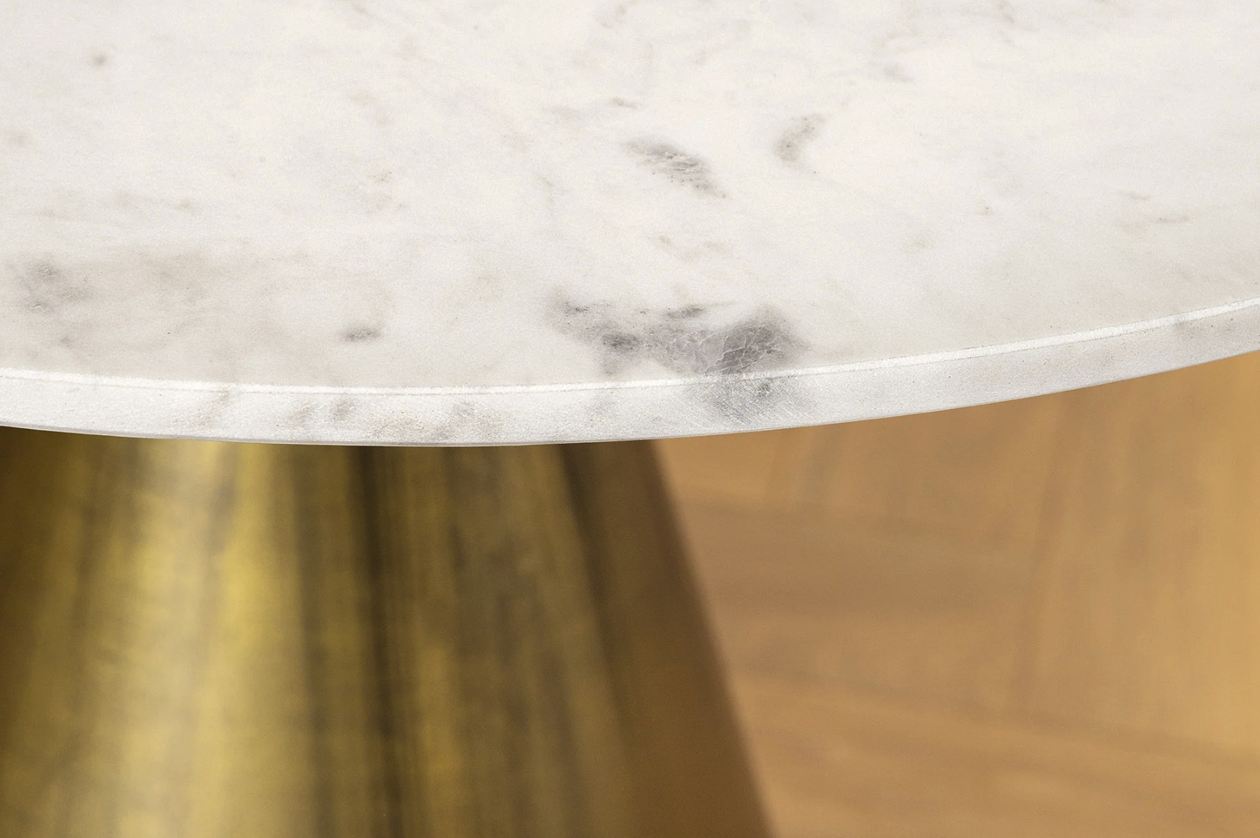 Avec son plateau rond en marbre blanc et sa structure en métal doré, la table SOLEA apporte une touche luxueuse à votre salle à manger. Chaque détail a été pensé pour marier robustesse et élégance, offrant ainsi une table aussi fonctionnelle qu’esthétique.