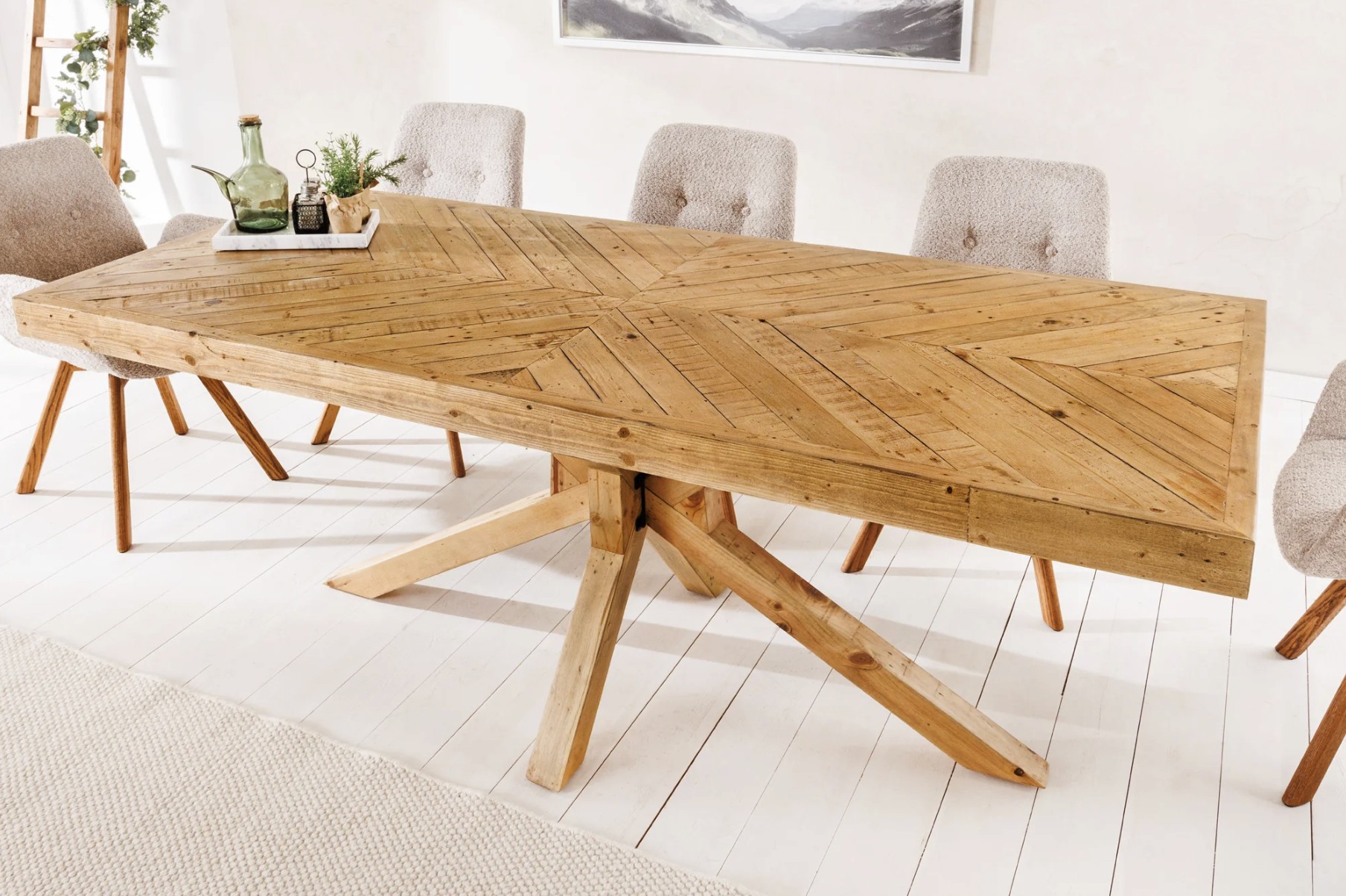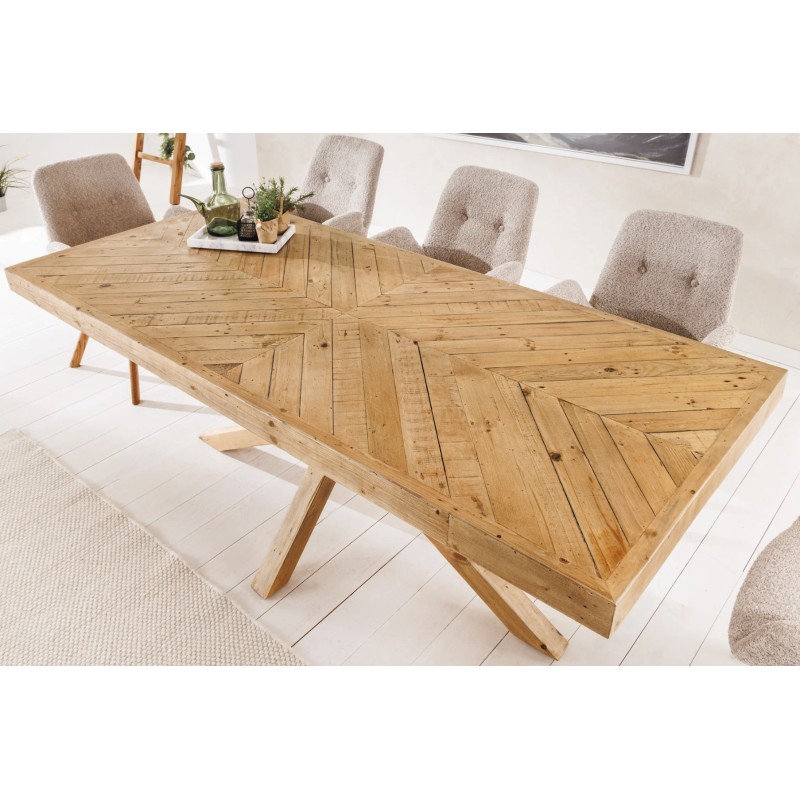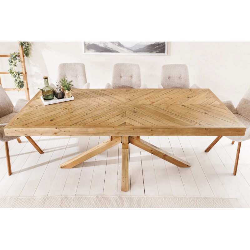 La table de salle à manger LOVARK incarne le charme rustique grâce à sa fabrication en bois massif de pin. Robuste et élégante, elle dispose d’un grand plateau rectangulaire de 200 cm, parfait pour réunir jusqu’à 10 convives dans une ambiance chaleureuse et conviviale.