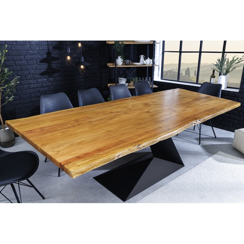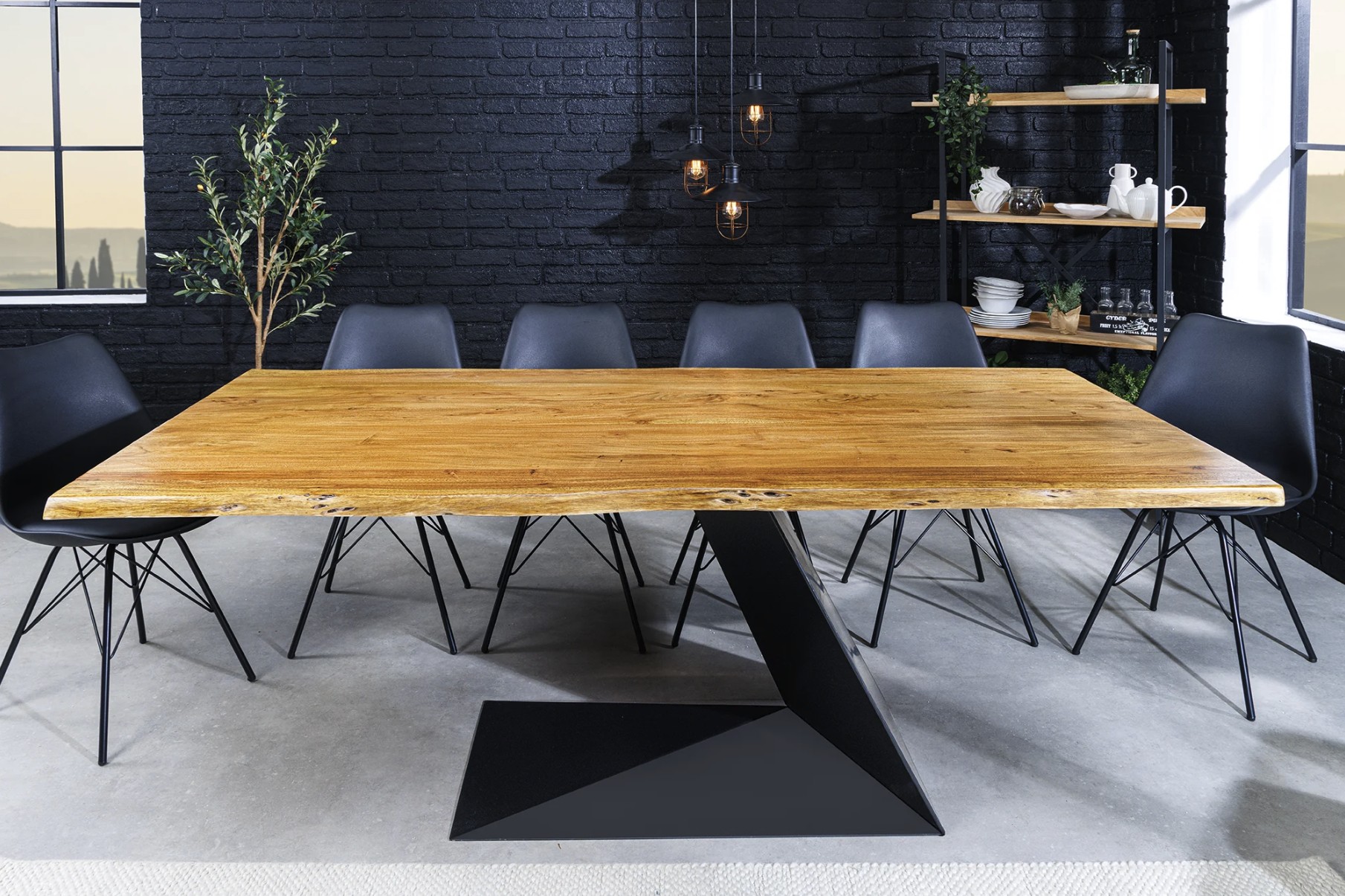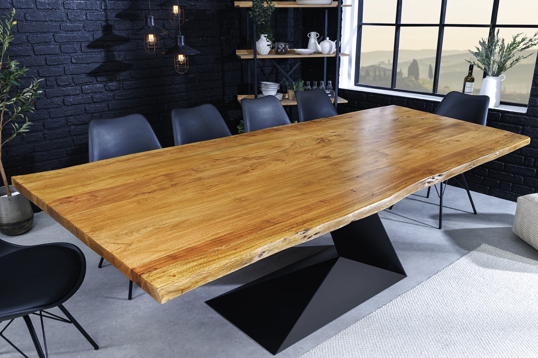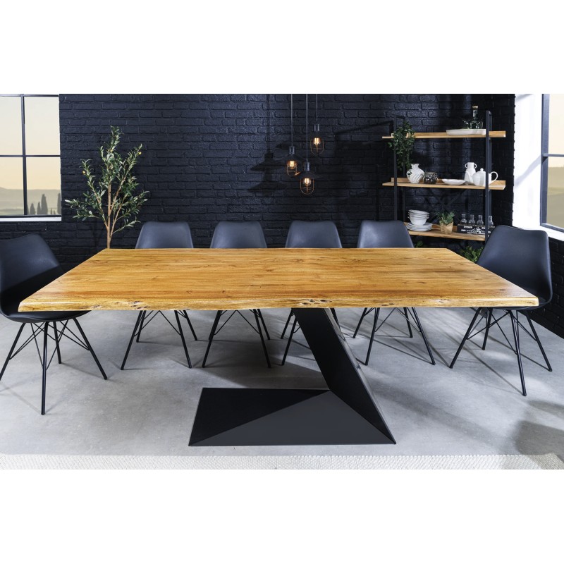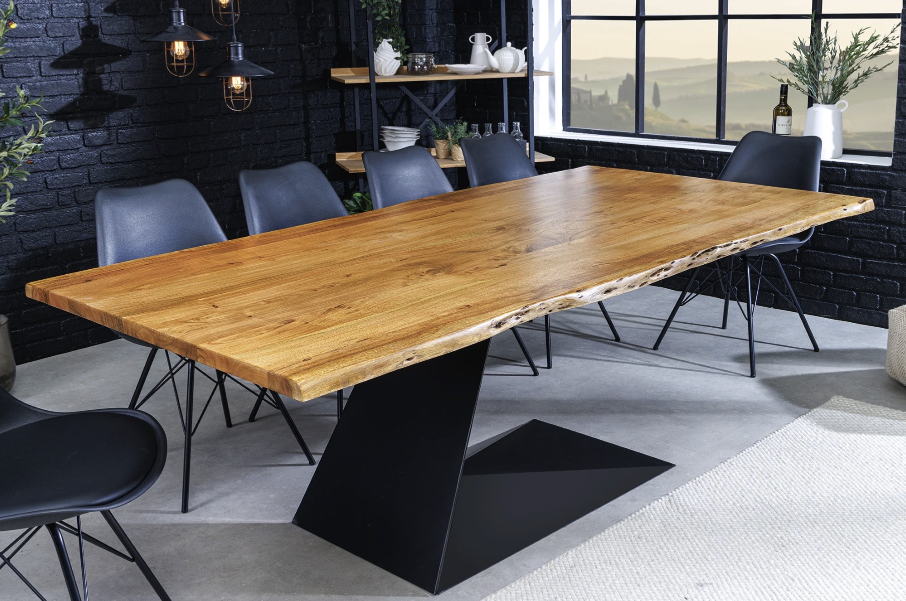 La table de salle à manger ARKAYA combine un plateau en bois massif verni avec une structure en métal noir pour un rendu à la fois robuste et élégant. Son format rectangulaire de 200 cm lui permet d’accueillir confortablement jusqu’à 10 convives, parfait pour vos repas conviviaux.
