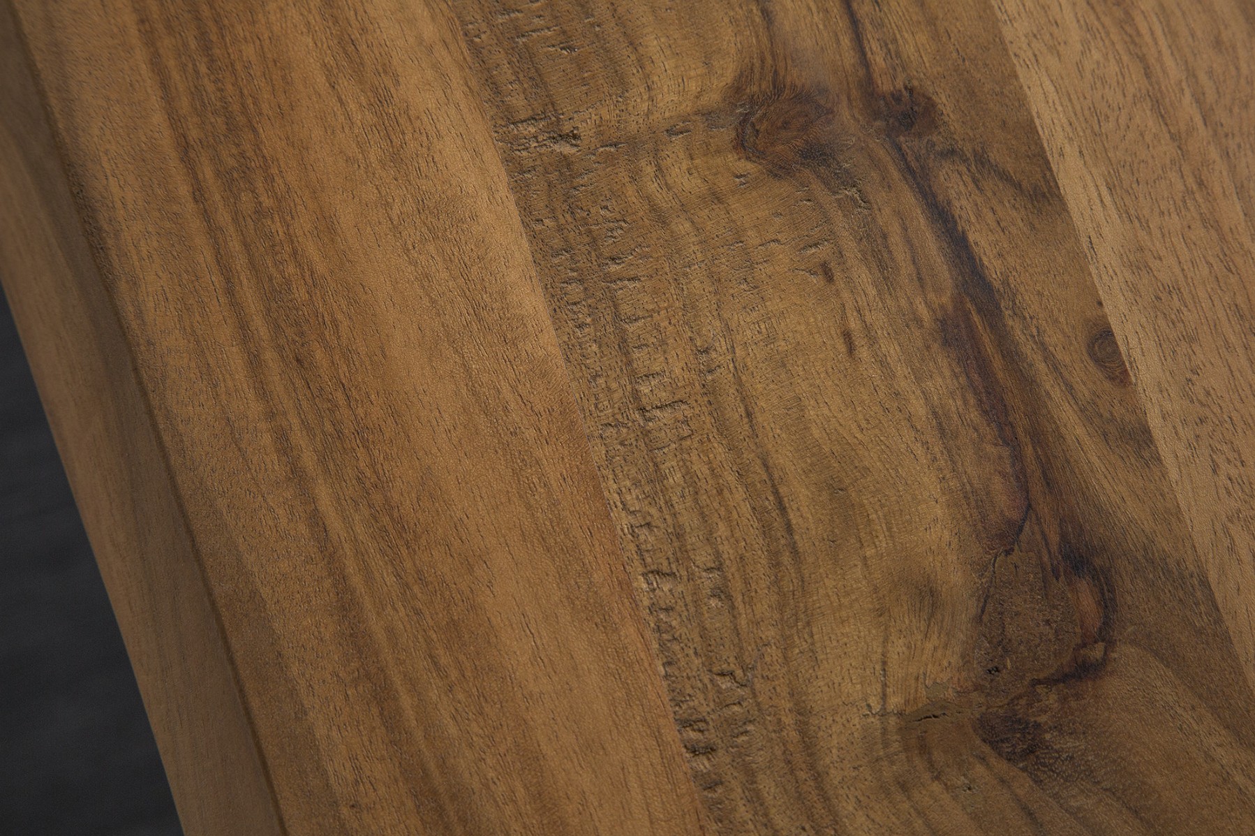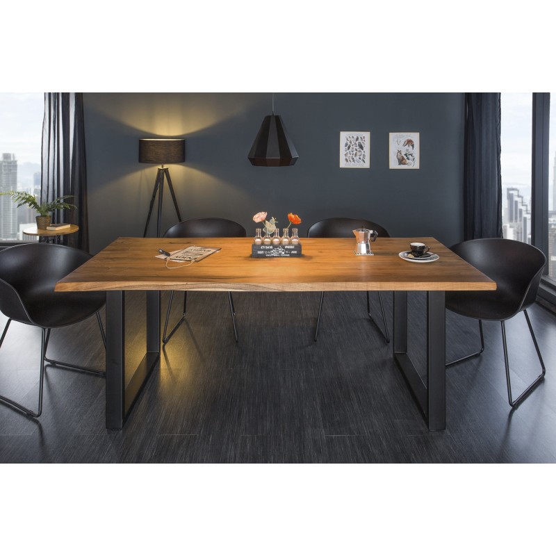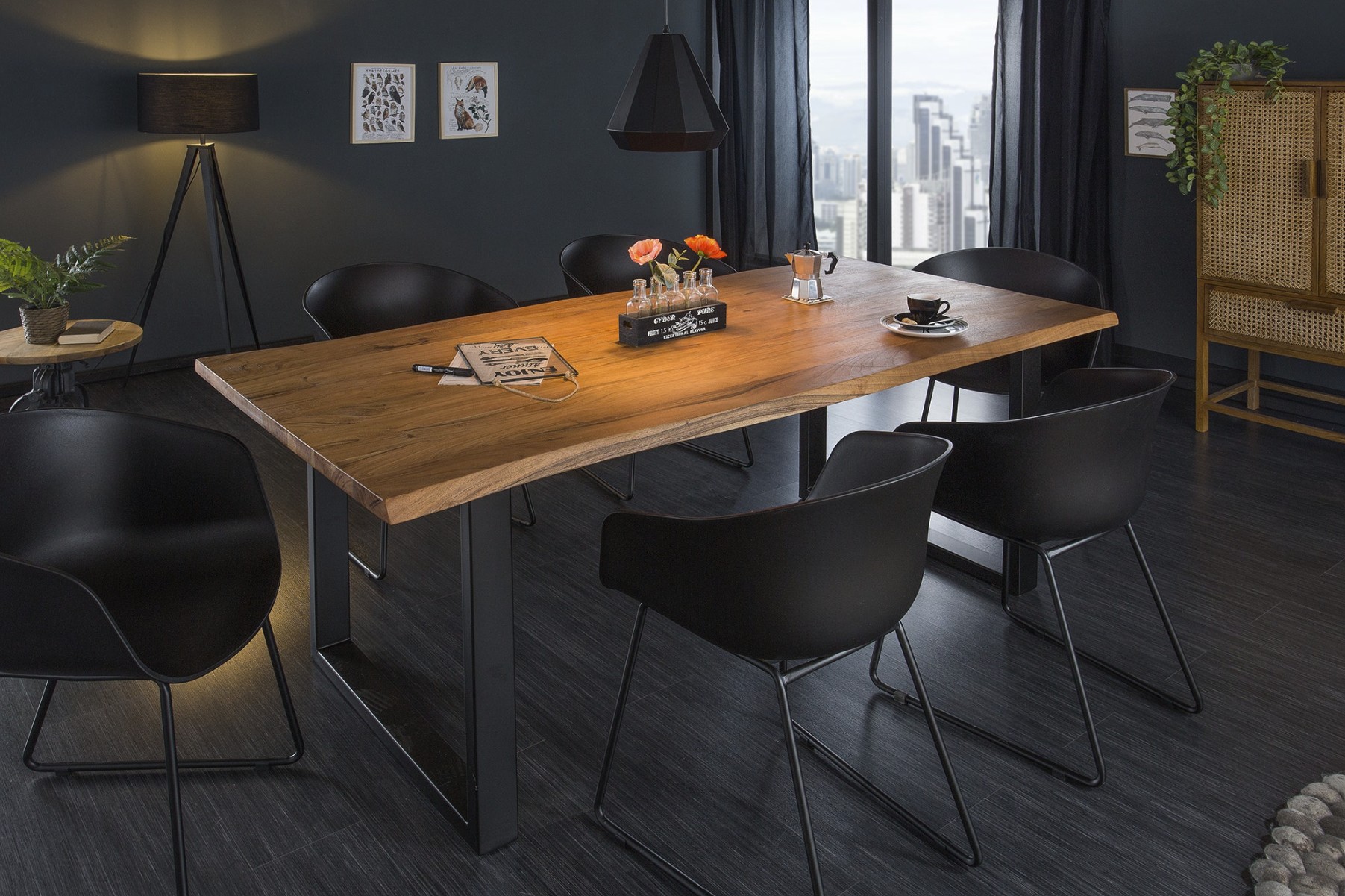 La table de salle à manger ARKAYA séduit par son mélange unique de bois massif d’acacia vernis et de métal noir. Avec son grand plateau rectangulaire de 200 cm, elle allie robustesse, élégance naturelle et style industriel pour un intérieur moderne et chaleureux.