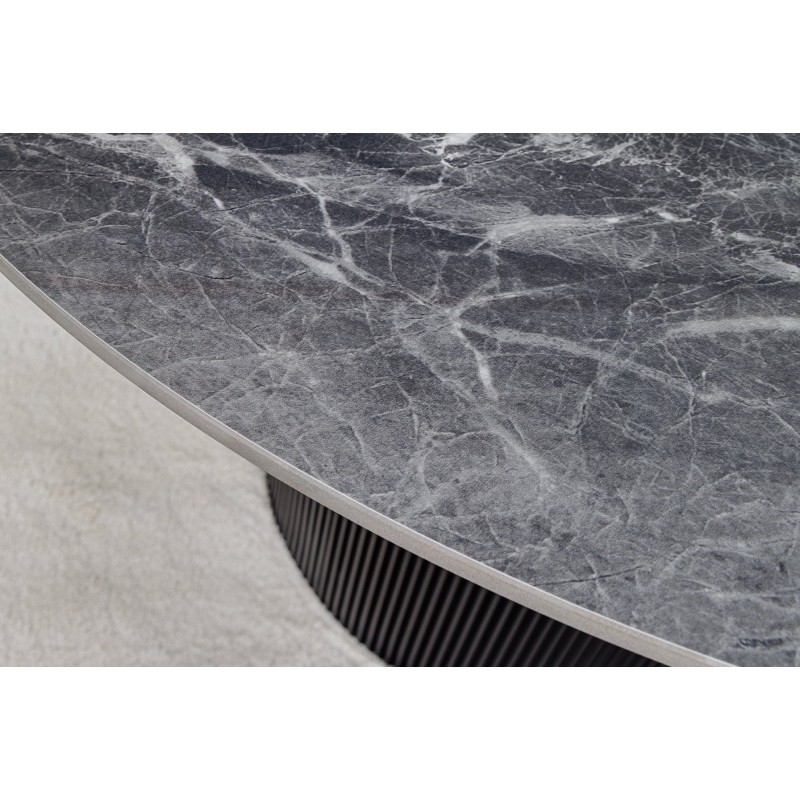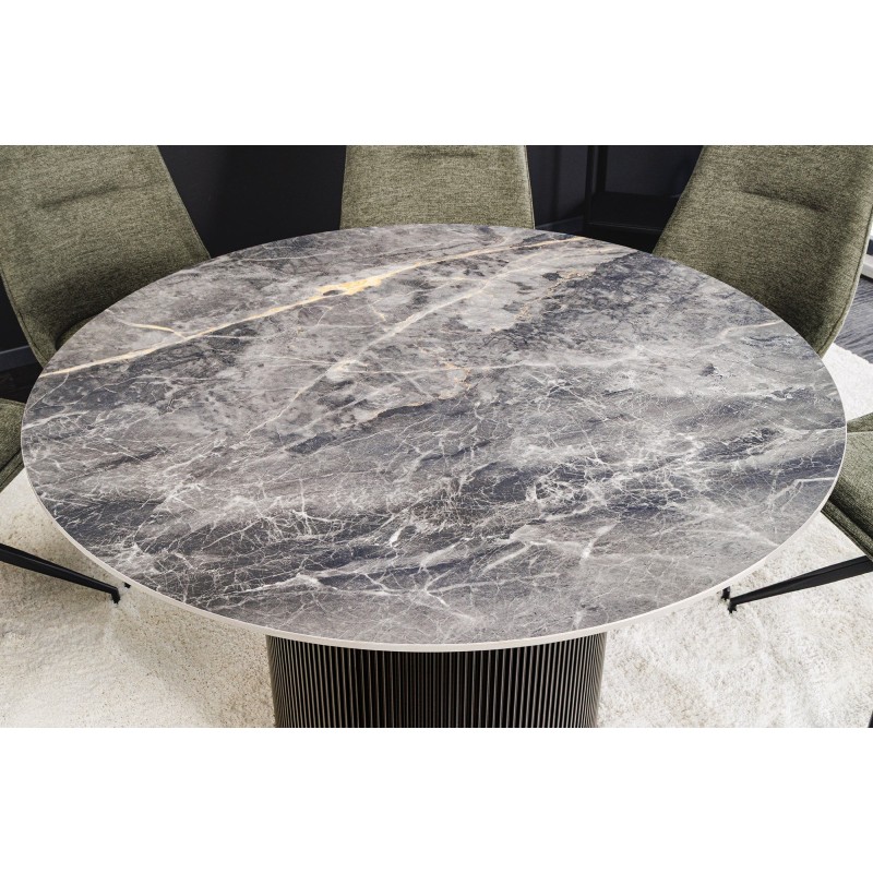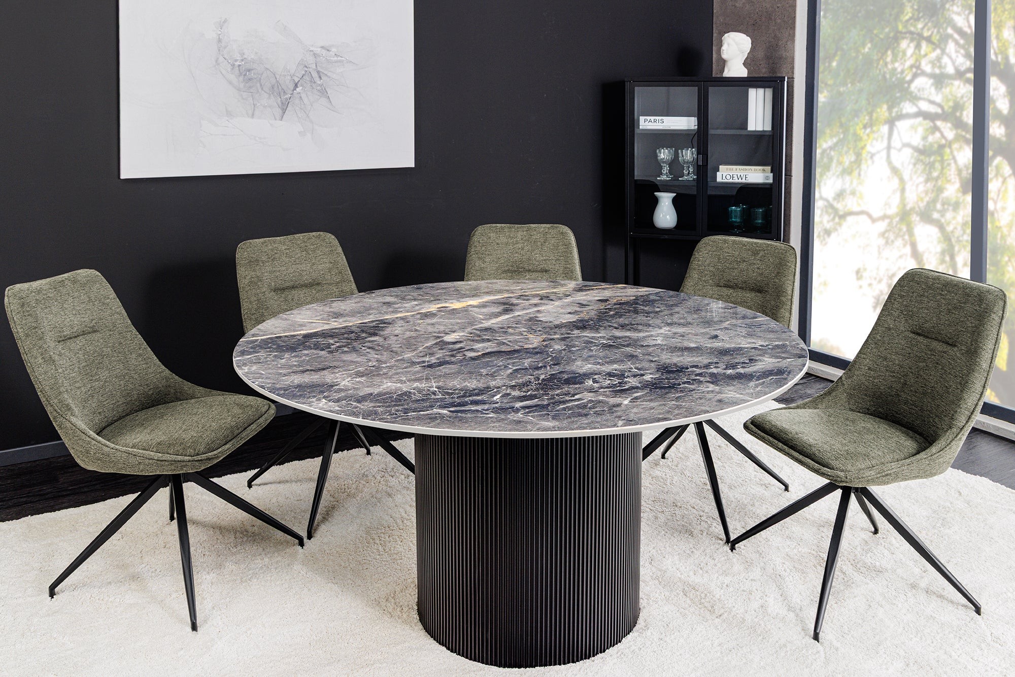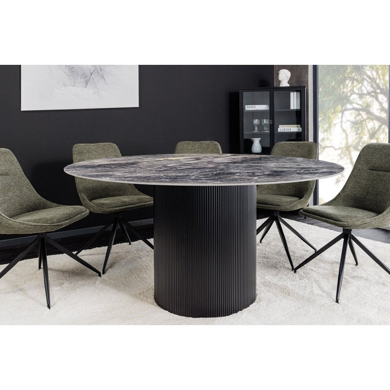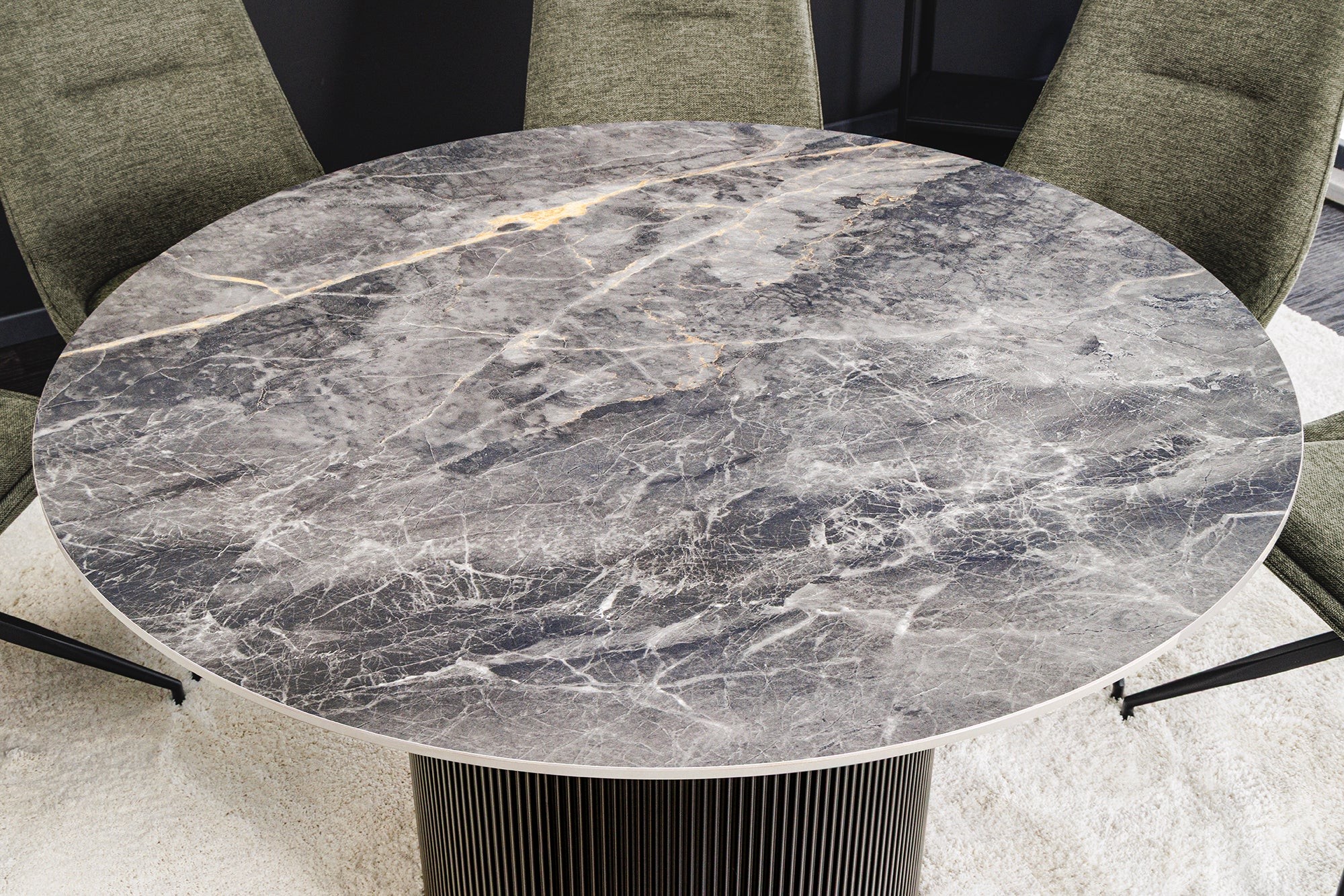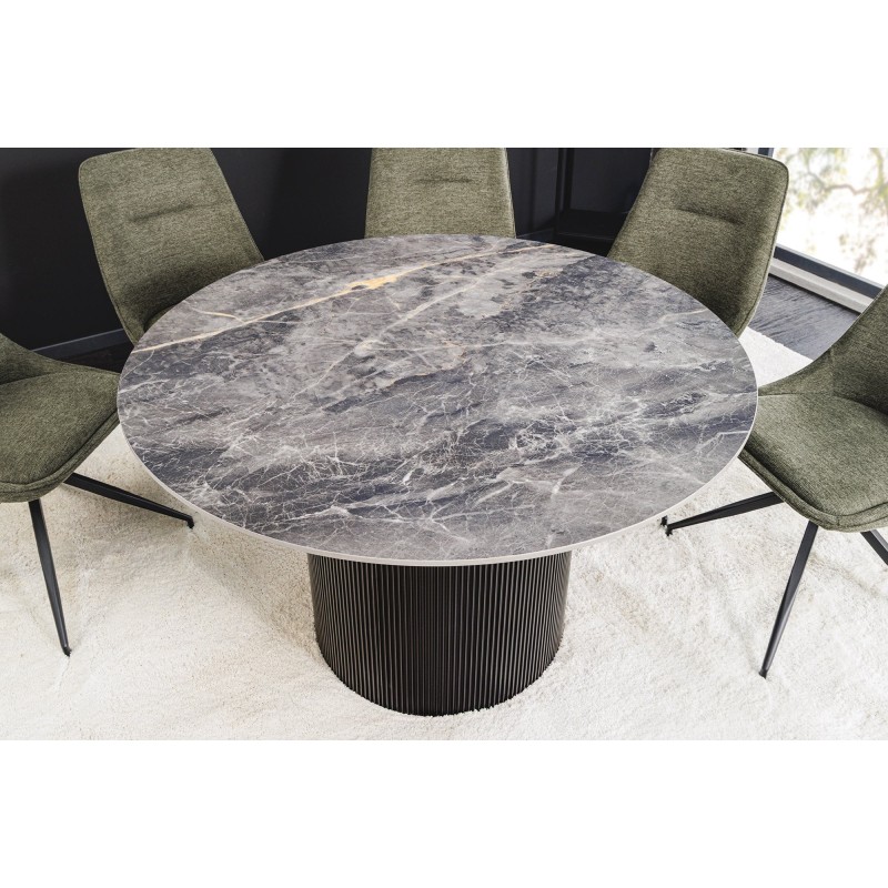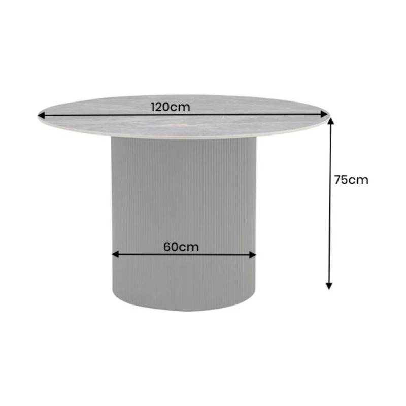 Avec son plateau rond de 120 cm, cette table combine parfaitement l'élégance de l’effet marbre et la robustesse de sa structure. Elle s’associe facilement à différents styles de chaises et de décoration pour un rendu harmonieux.
