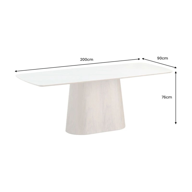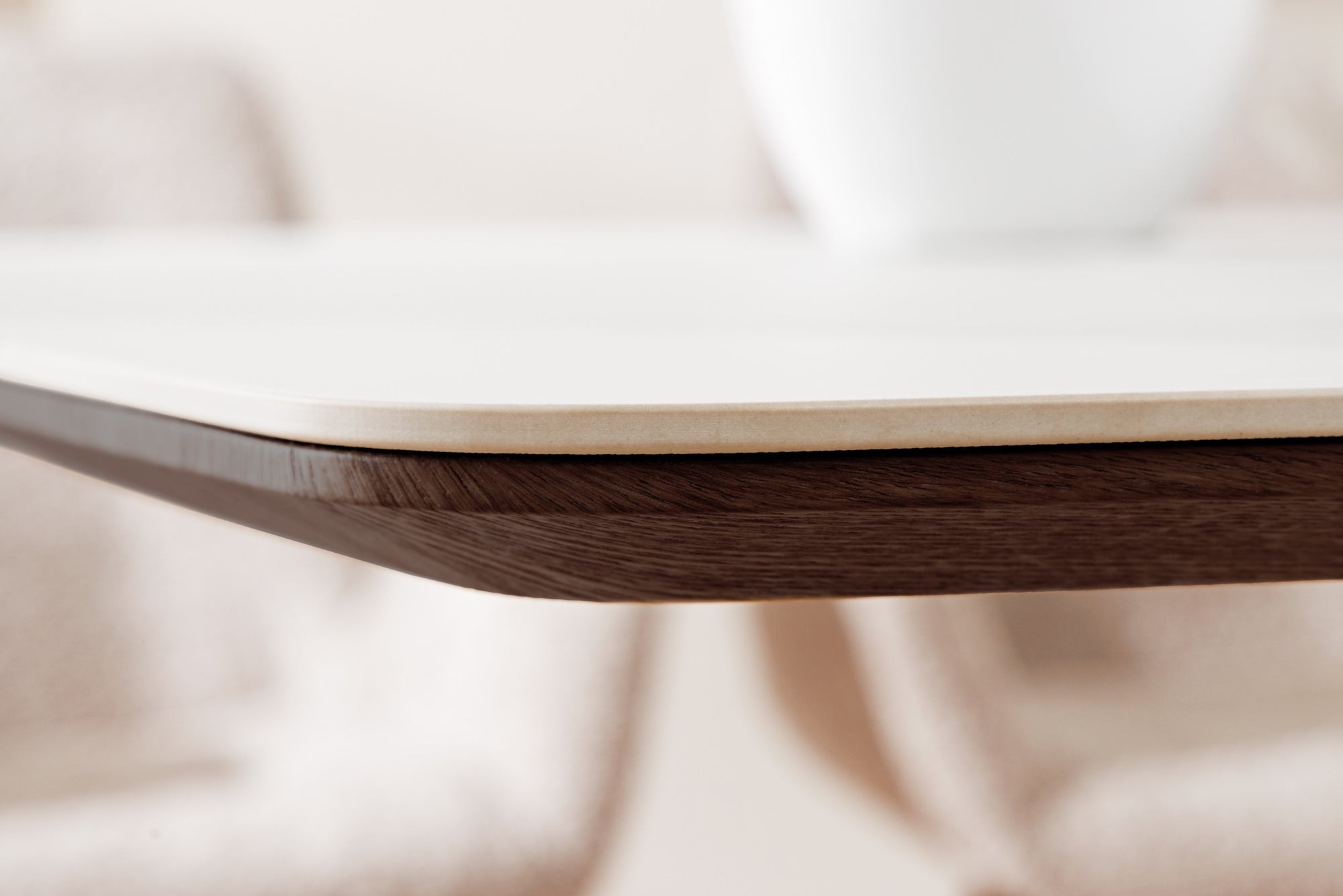 Avec ses 200 cm de longueur, la table rectangulaire LUMEA peut accueillir confortablement 8 à 10 convives. Sa base géométrique aux proportions équilibrées (70 à 85 cm de largeur × 30 à 45 cm de profondeur × H73,5 cm), assure une grande stabilité et une présence visuelle affirmée. Le contraste entre le bois foncé et le marbre blanc apporte un style contemporain et raffiné.