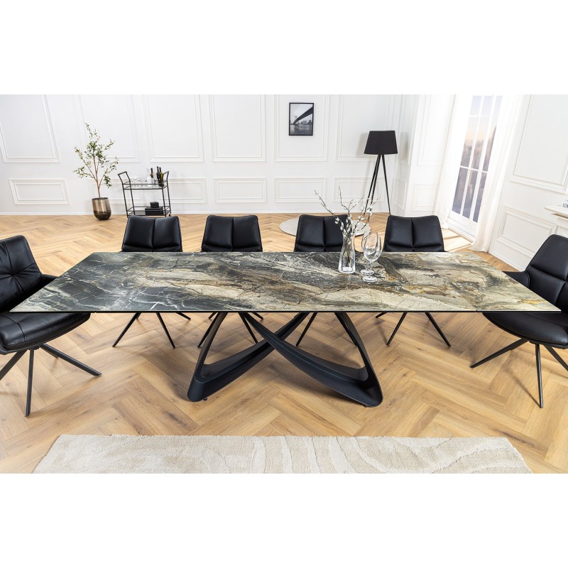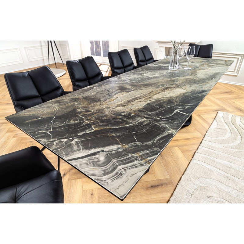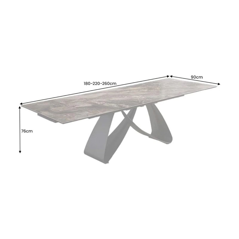 La table ZAREL incarne le raffinement contemporain avec son plateau en céramique et verre trempé à l’aspect marbre gris taupe. Conçue pour sublimer votre salle à manger, elle associe robustesse et design épuré grâce à sa structure en métal solide et durable.