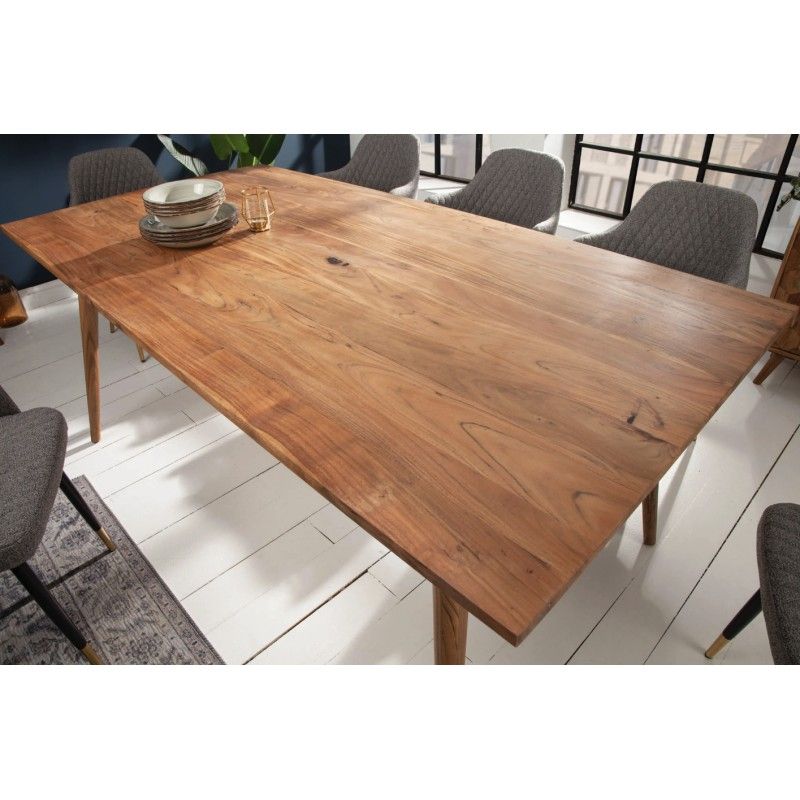 La table de salle à manger SCANI 200 cm allie la douceur du style nordique à la noblesse du bois massif d’acacia verni. Avec son design épuré et sa teinte chaleureuse, elle s’intègre parfaitement dans un intérieur à l’esprit naturel et contemporain.
