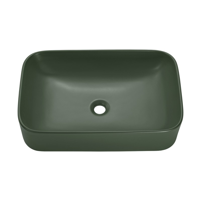 Apportez une touche naturelle et contemporaine à votre salle de bain avec cette vasque à poser rectangulaire 61x38 cm en céramique vert mat, livrée avec une bonde de lavabo clic clac (poussoir) assortie pour une finition parfaitement harmonieuse. Son coloris profond et apaisant crée une ambiance élégante et moderne, idéale pour un intérieur tendance.