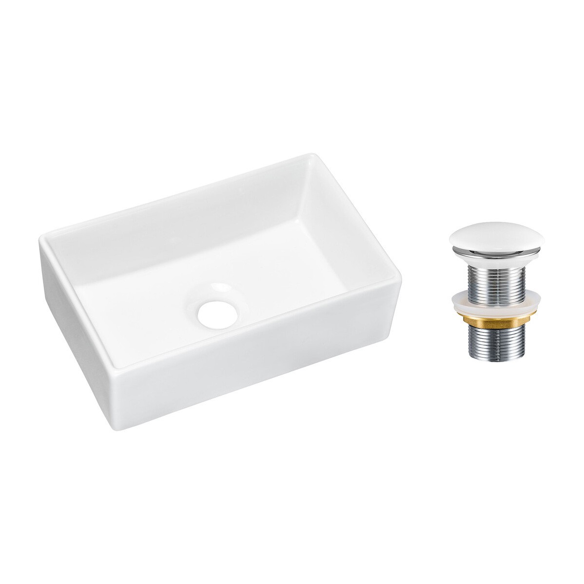 Apportez modernité et élégance à votre salle de bain avec cette vasque à poser rectangulaire 35x22 cm en céramique blanc brillant, livrée avec une bonde de lavabo clic clac (poussoir) assortie pour une finition parfaitement harmonieuse. Son design épuré et ses lignes nettes en font un choix idéal pour les espaces contemporains et minimalistes.