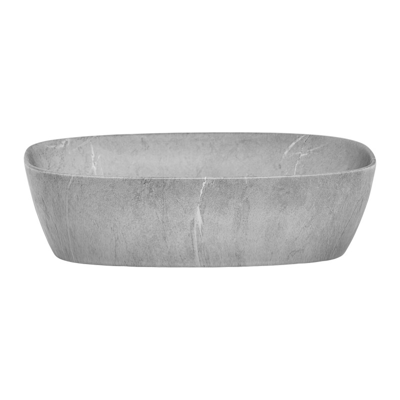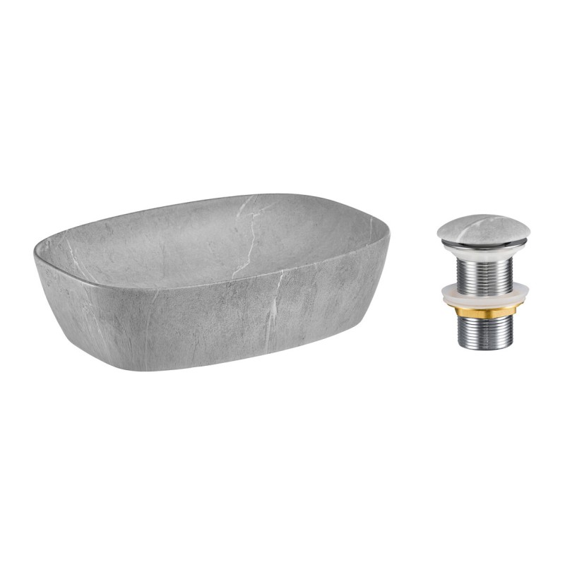 Apportez une touche minérale et contemporaine à votre salle de bain avec cette vasque à poser rectangulaire 50,5x38,5 cm en céramique gris effet pierre naturelle, livrée avec une bonde de lavabo clic clac (poussoir) assortie coloris gris pierre naturelle pour une finition parfaitement harmonieuse. Sa teinte grise douce, inspirée de la pierre brute, est sublimée par un veinage délicat qui lui confère un rendu authentique et élégant.