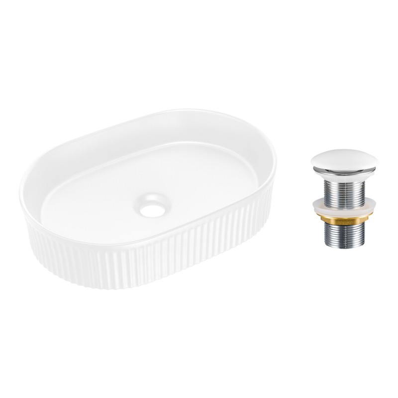 Son esthétique est sublimée par un relief vertical décoratif sur le pourtour extérieur, apportant du caractère et une finition texturée élégante. Ce détail graphique transforme la vasque en véritable élément décoratif tout en conservant une silhouette équilibrée et intemporelle.