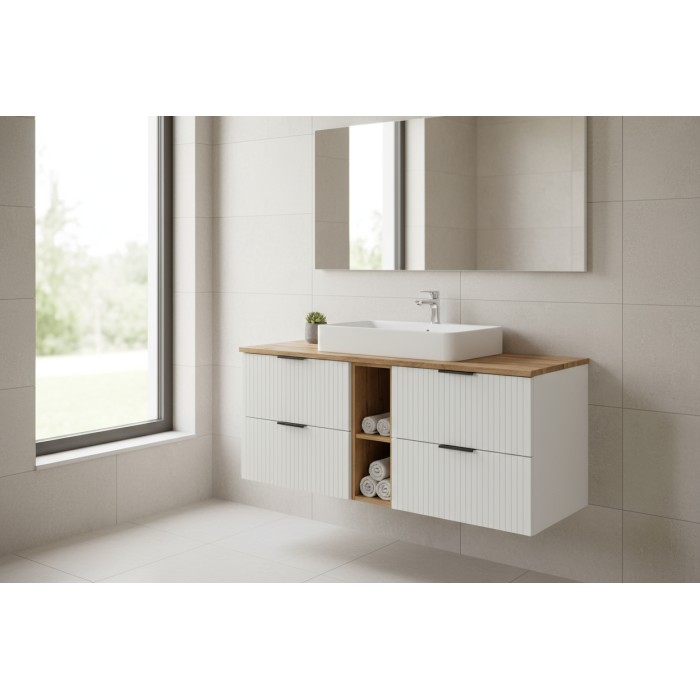 Aperçu rapide Aperçu rapide Ajouter au panier available NOXERA Ensemble de salle de bain NOXERA 140 cm – Blanc mat et chêne wotan – Double vasque et niches ouvertes 769,00 € Nouveauté ! Prix
